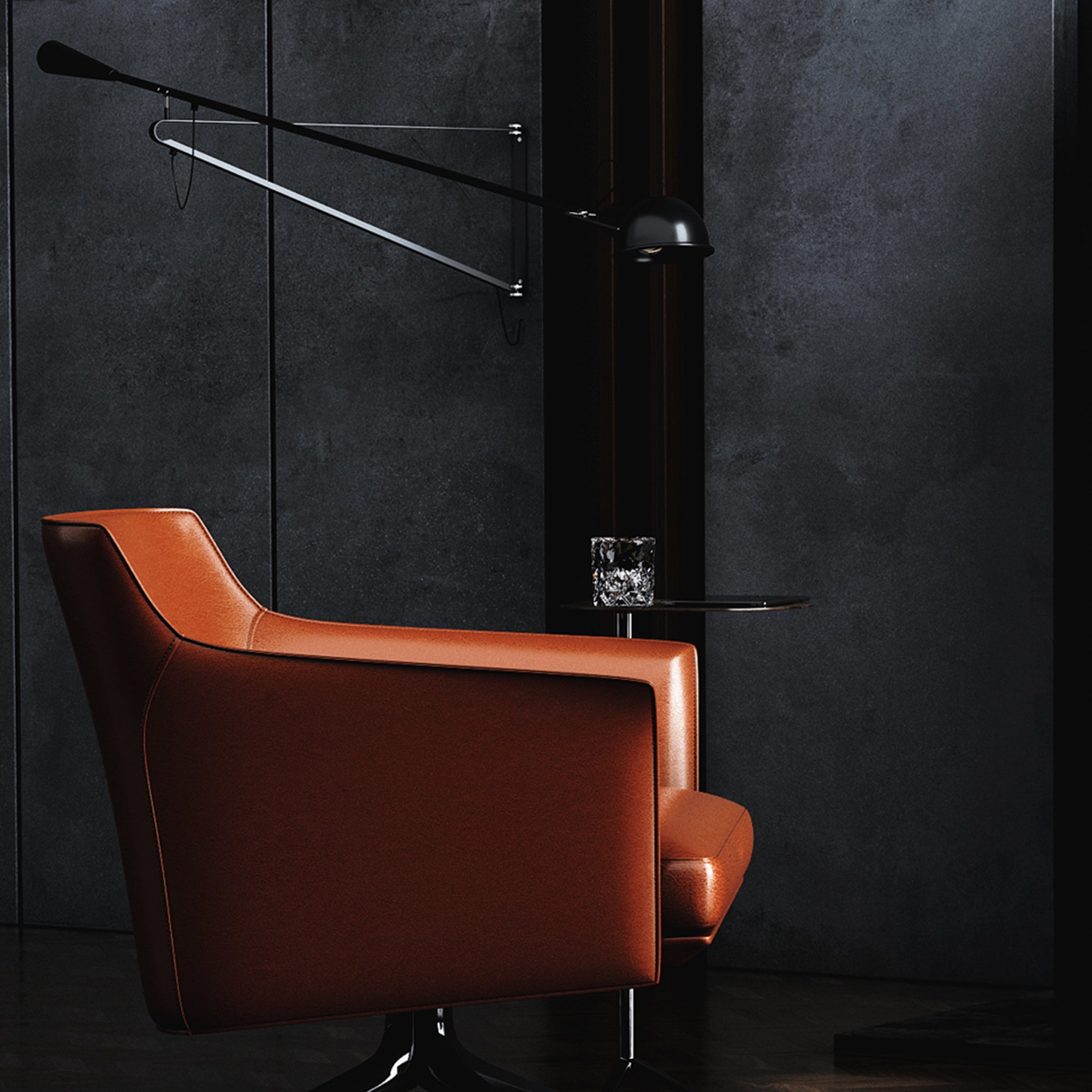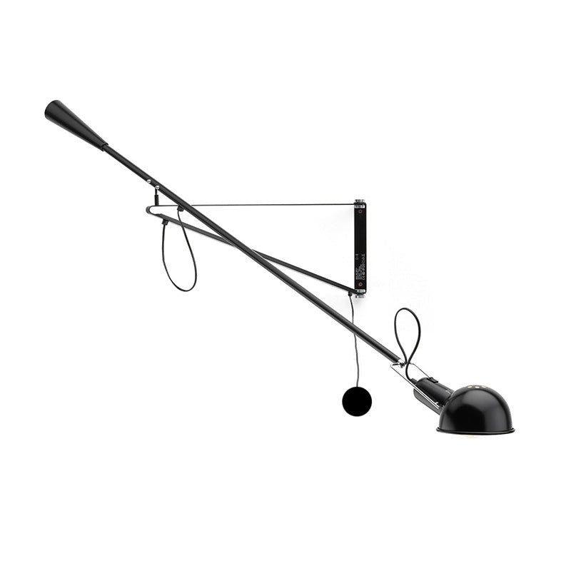 The Parete Swing Arm Wall Light stands out with its extended arm that appears to hover above your couch, dining table, desk, or any space requiring illumination. Its adjustable metal arm is stabilized by a cast-iron counterweight, and the lamp head rotates 360°, enabling versatile light direction.