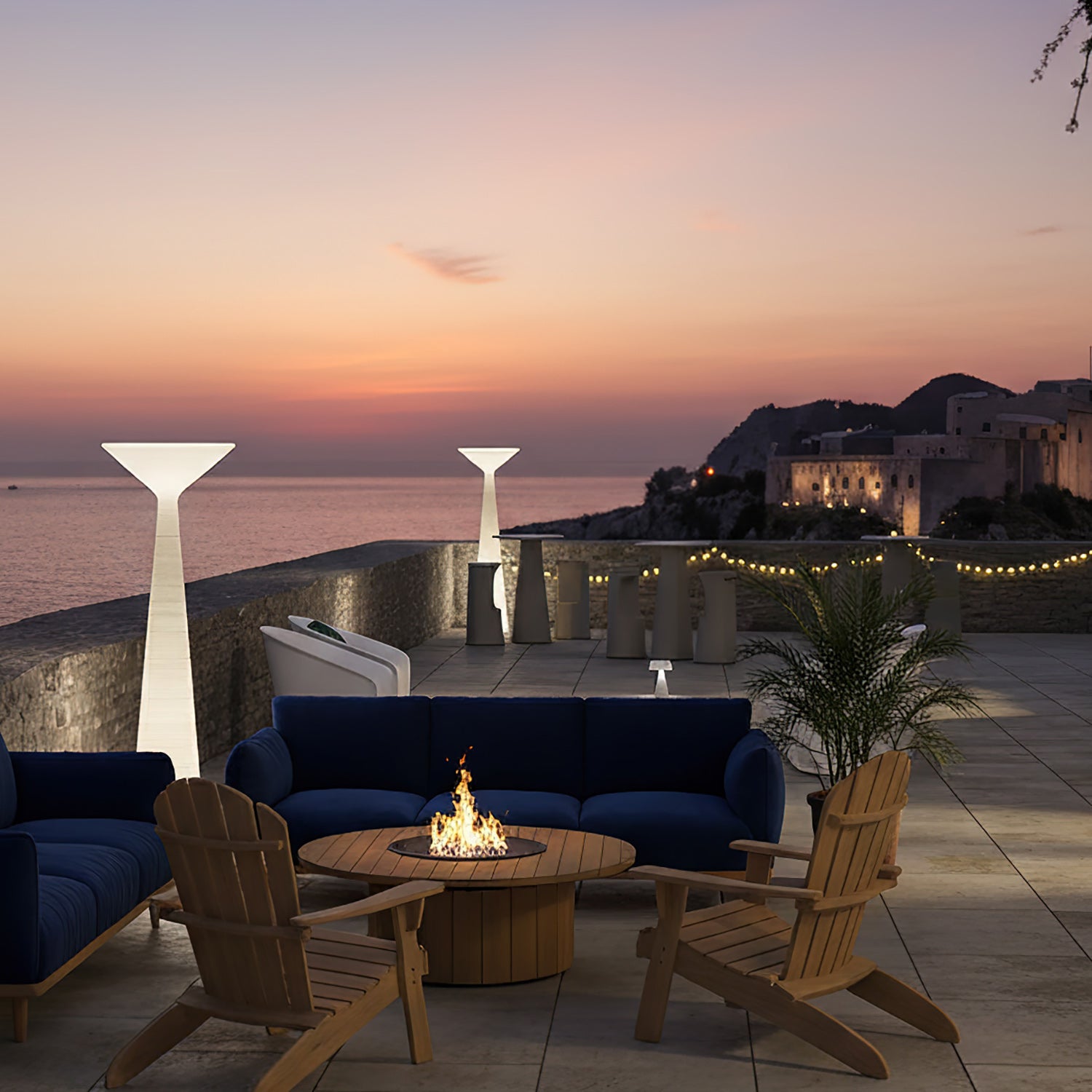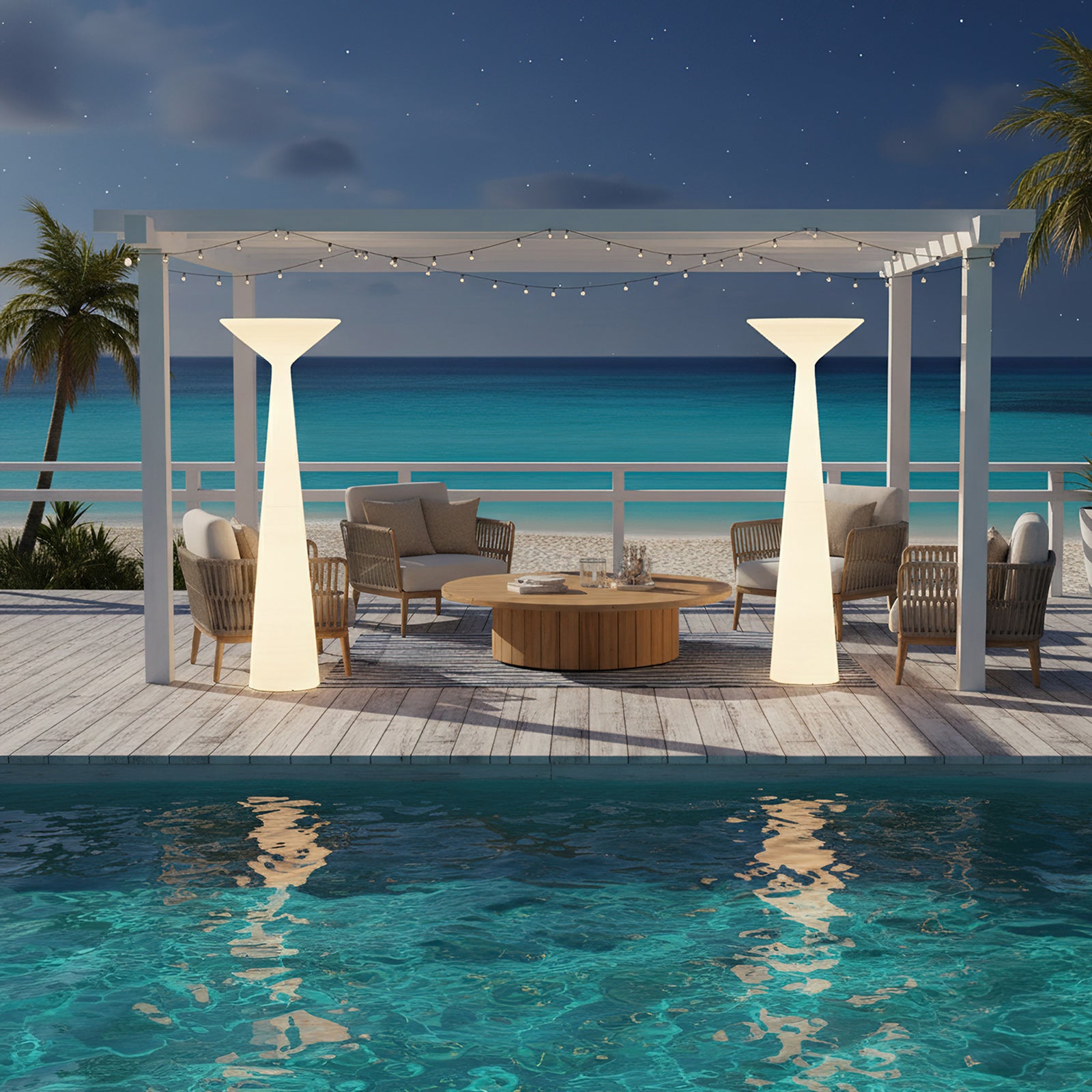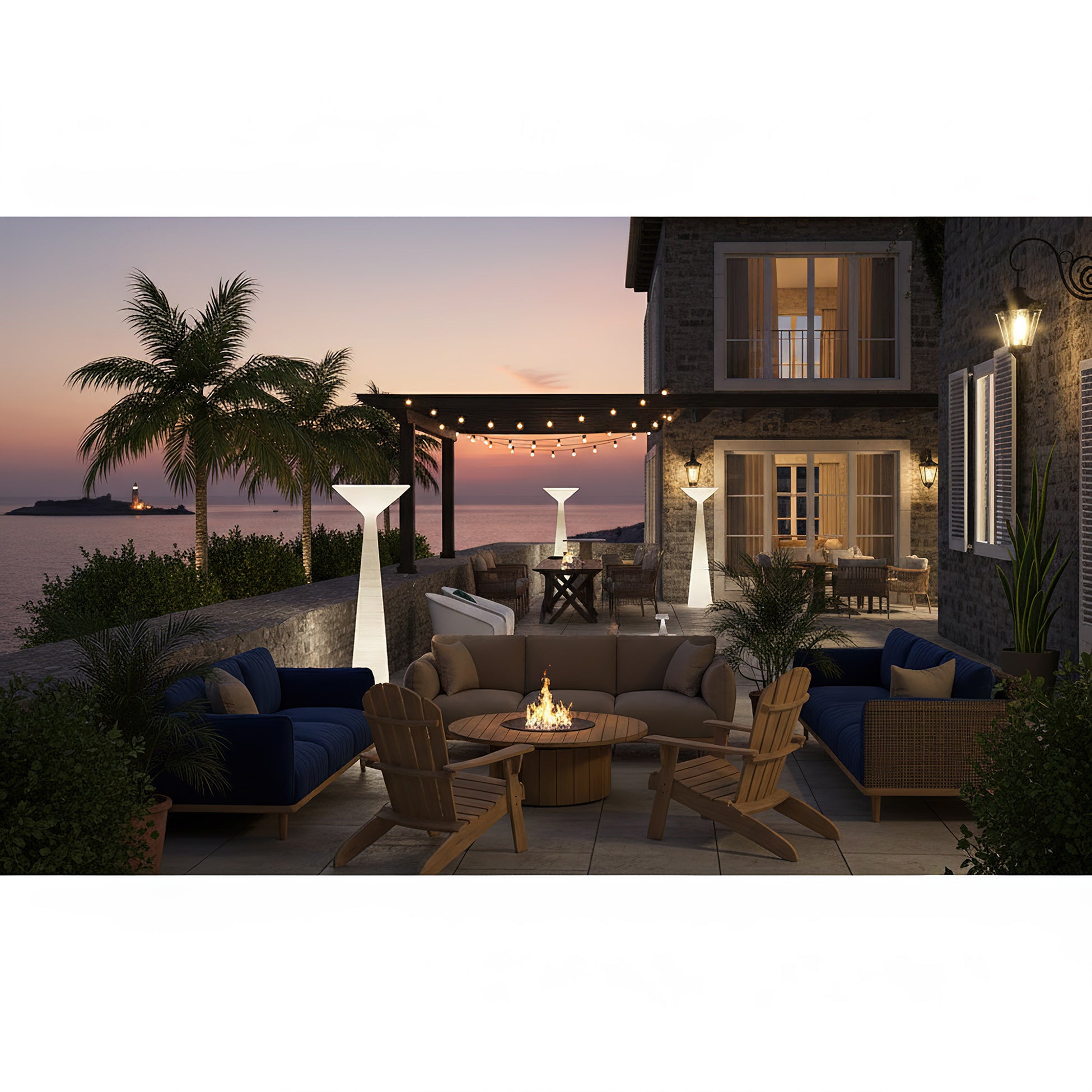 The Tebe floor lamp features a refined silhouette and emits light that envelops its entire form, evoking the appearance of a Greek column. Its timeless geometric design is reinterpreted with a modern sensibility, enhanced by a textured surface that gives it a tactile quality, resembling a carefully carved stone column.