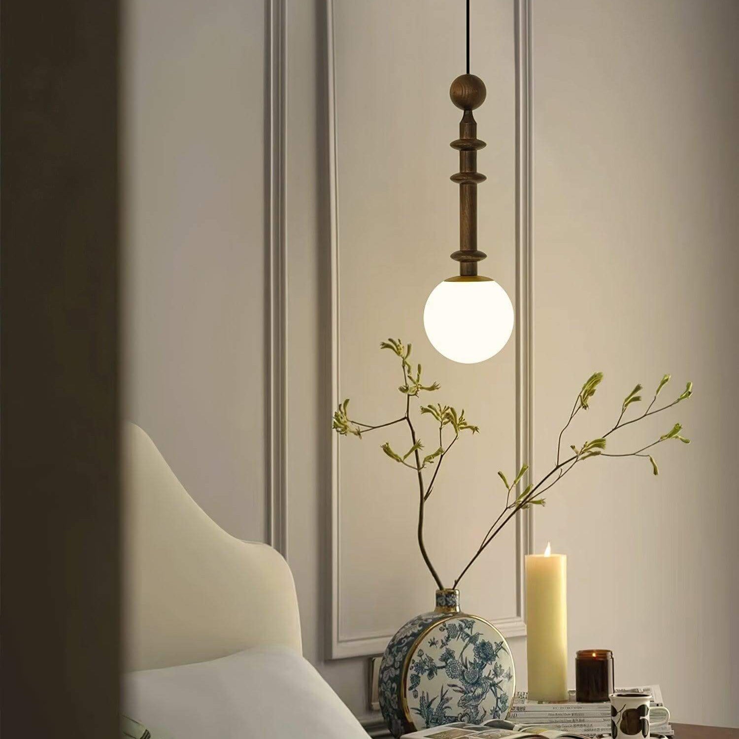 This Roman Column Pendant Lamp channels classical architecture through its distinctive columnar silhouette, merging traditional craftsmanship with contemporary lighting design. The combination of ash wood, metal framework, and hand-blown glass creates a sophisticated fixture that diffuses light evenly while maintaining visual interest. Perfect for establishing focal points in dining spaces or transitional areas, it delivers the understated elegance characteristic of European country interiors.