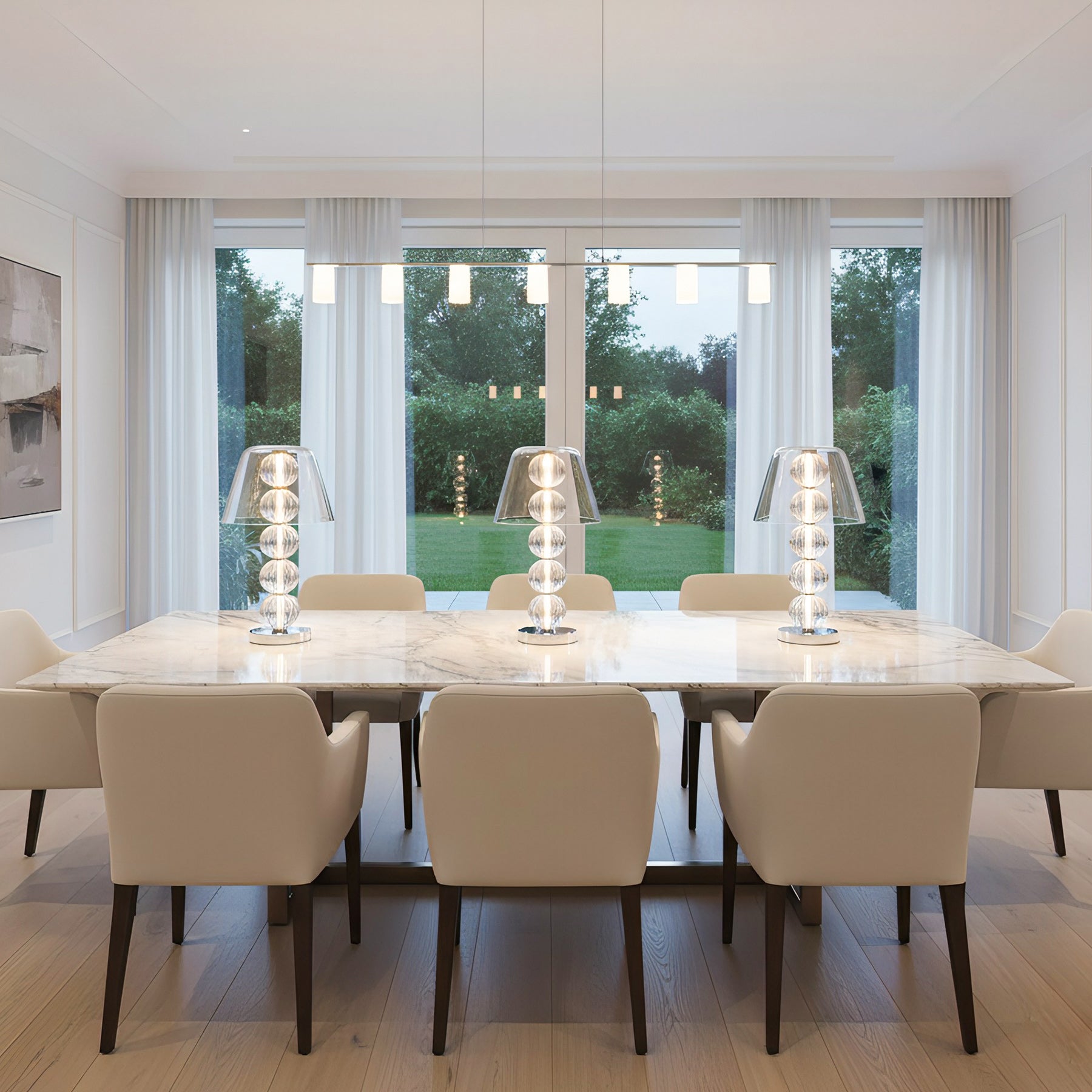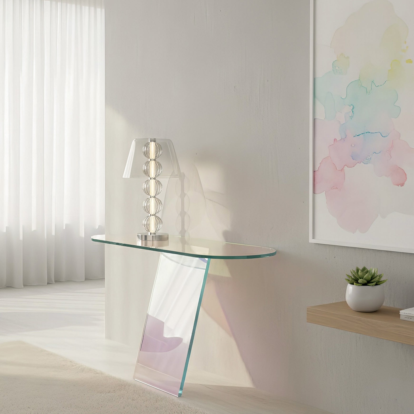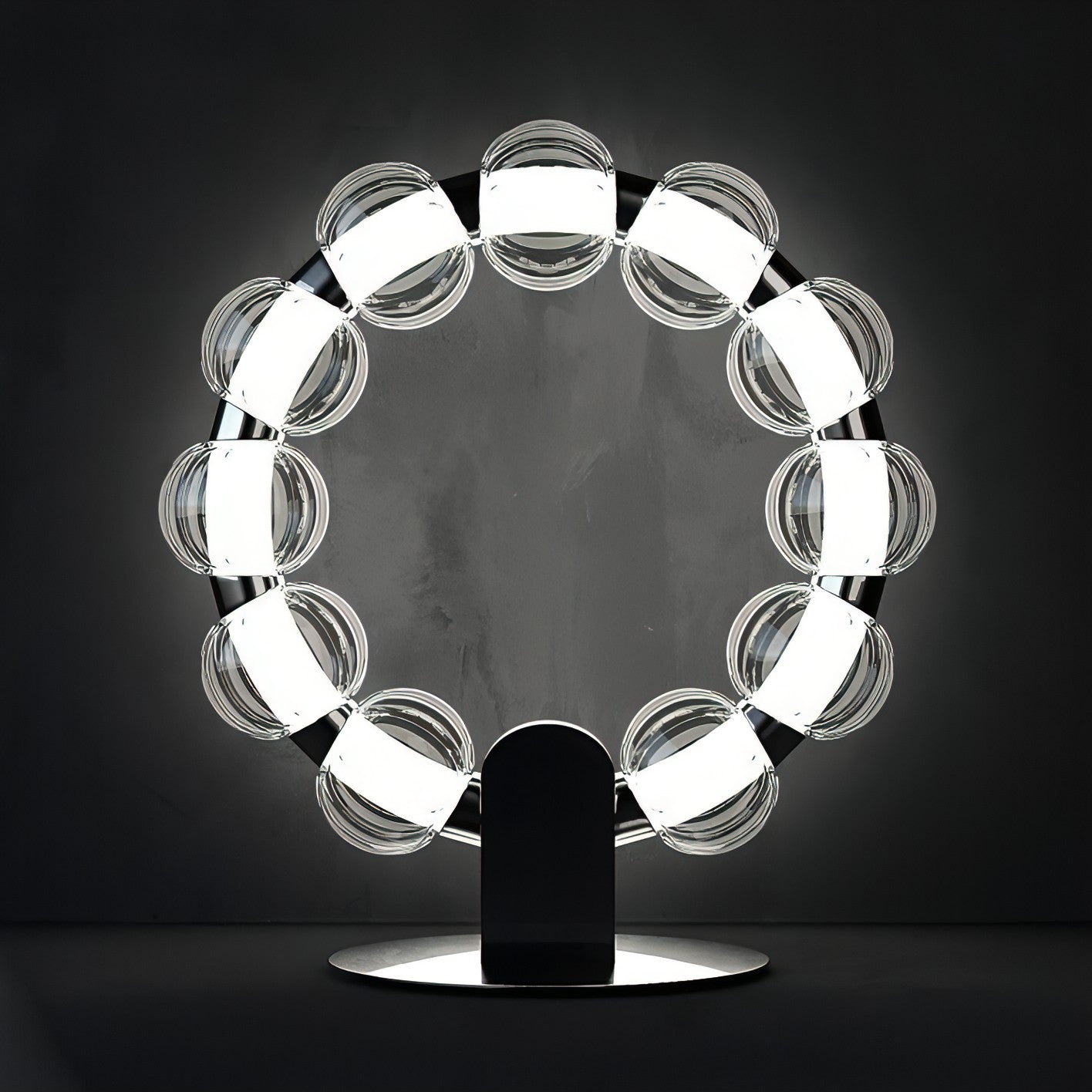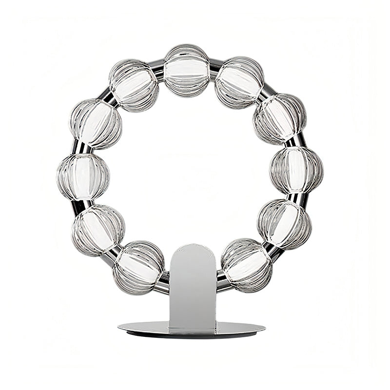 The Amulet Table Lamp merges traditional African joss imagery with advanced lighting technology to evoke a timeless sense of domestic ambiance dating back to prehistoric times. Its handcrafted glass beads adorn a chain base crafted from contemporary acrylic and LED components, ensuring a soulful illumination that enhances any modern interior.