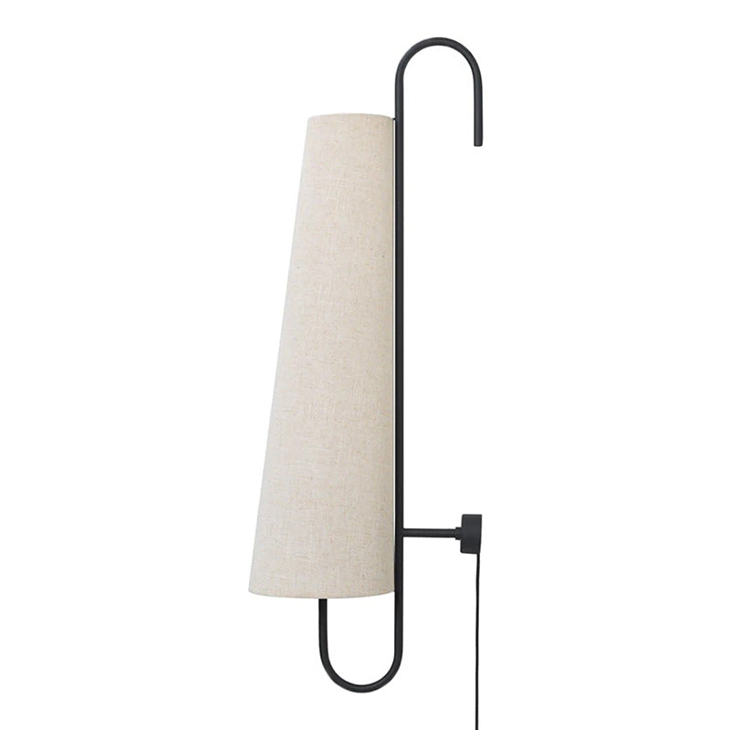 The Ancora Plug-In Wall Light features a warm, textured textile lampshade that elegantly complements its powder-coated iron frame, evoking a poetic and vintage aesthetic. This design masterfully harmonizes delicacy with sturdy materials, enhancing any room with a captivating and refined atmosphere.