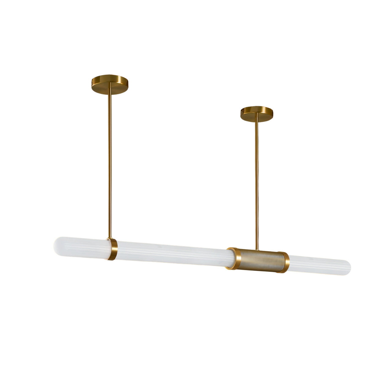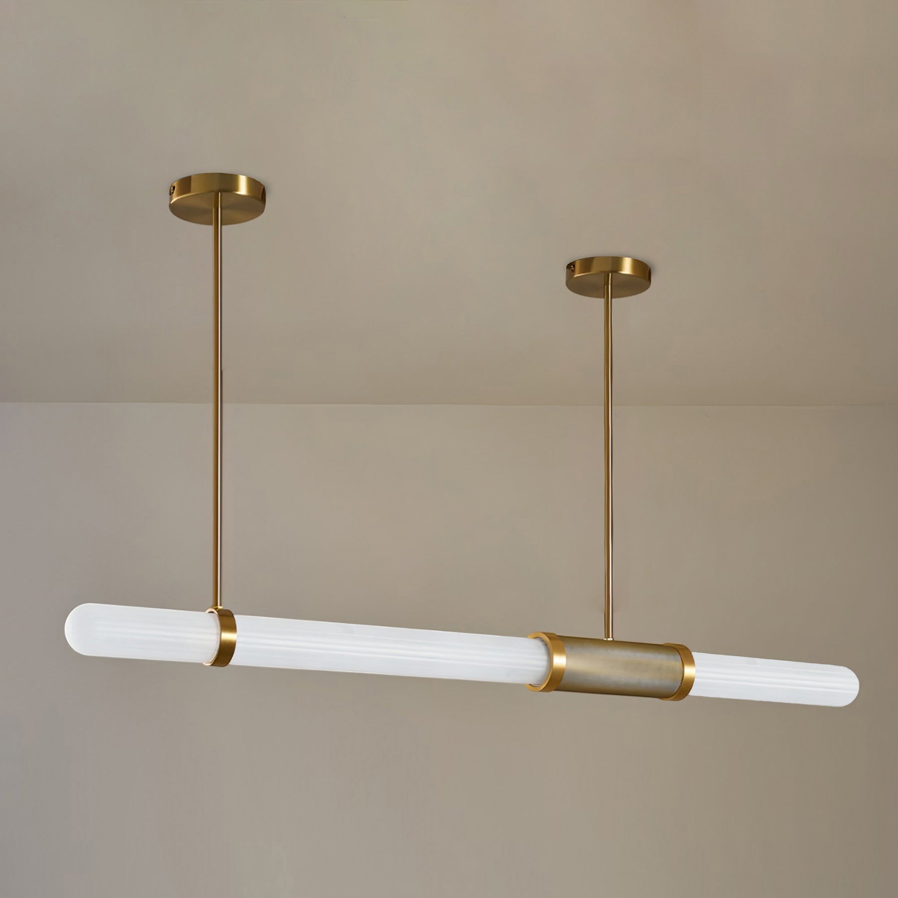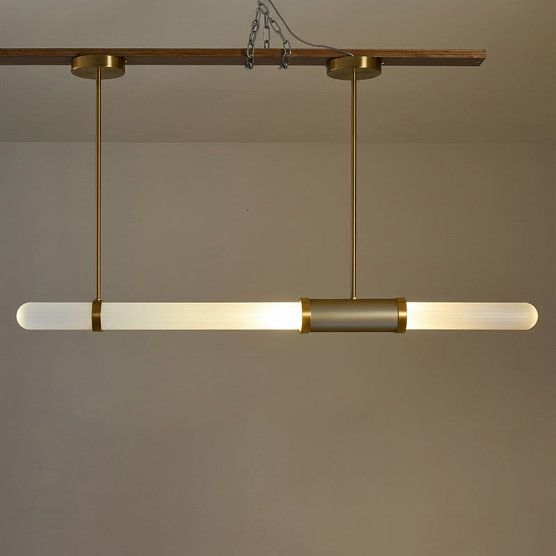The Dalton Linear Pendant Lamp crafted from quality aluminum and frosted Glass, this chandelier not only adds a touch of luxury and inviting atmosphere but also ensures durability, making it a perfect centerpiece for your home decor.
