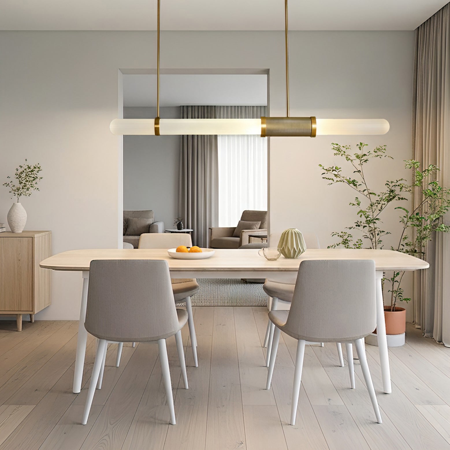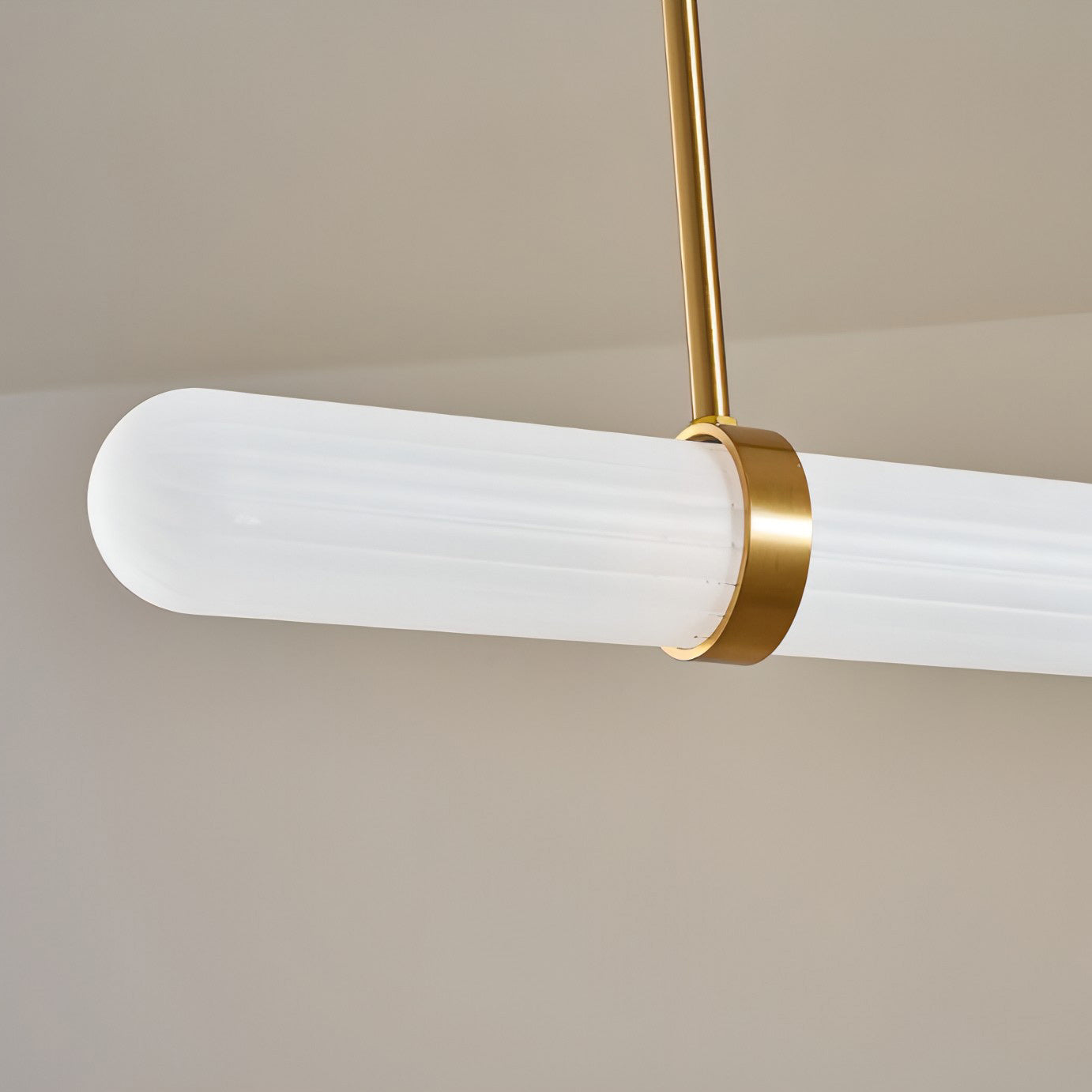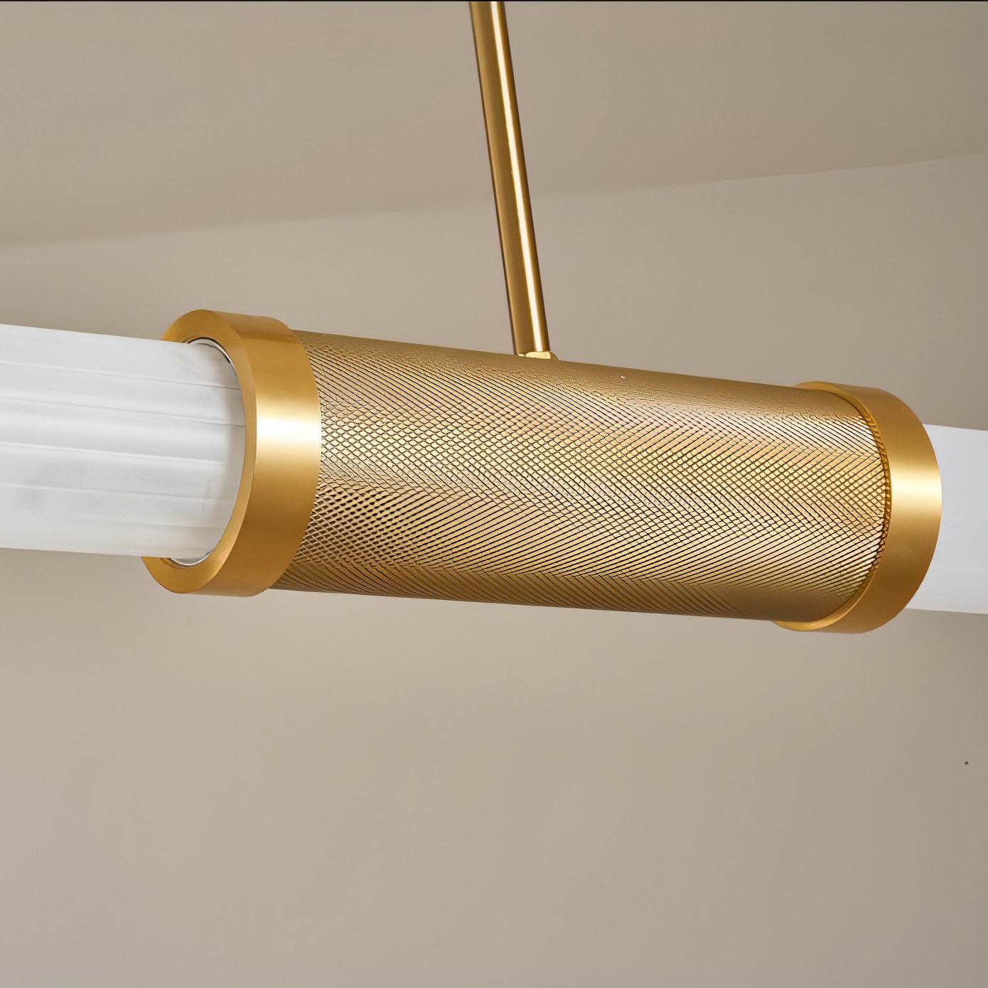 The Dalton Linear Pendant Lamp crafted from quality aluminum and frosted Glass, this chandelier not only adds a touch of luxury and inviting atmosphere but also ensures durability, making it a perfect centerpiece for your home decor.