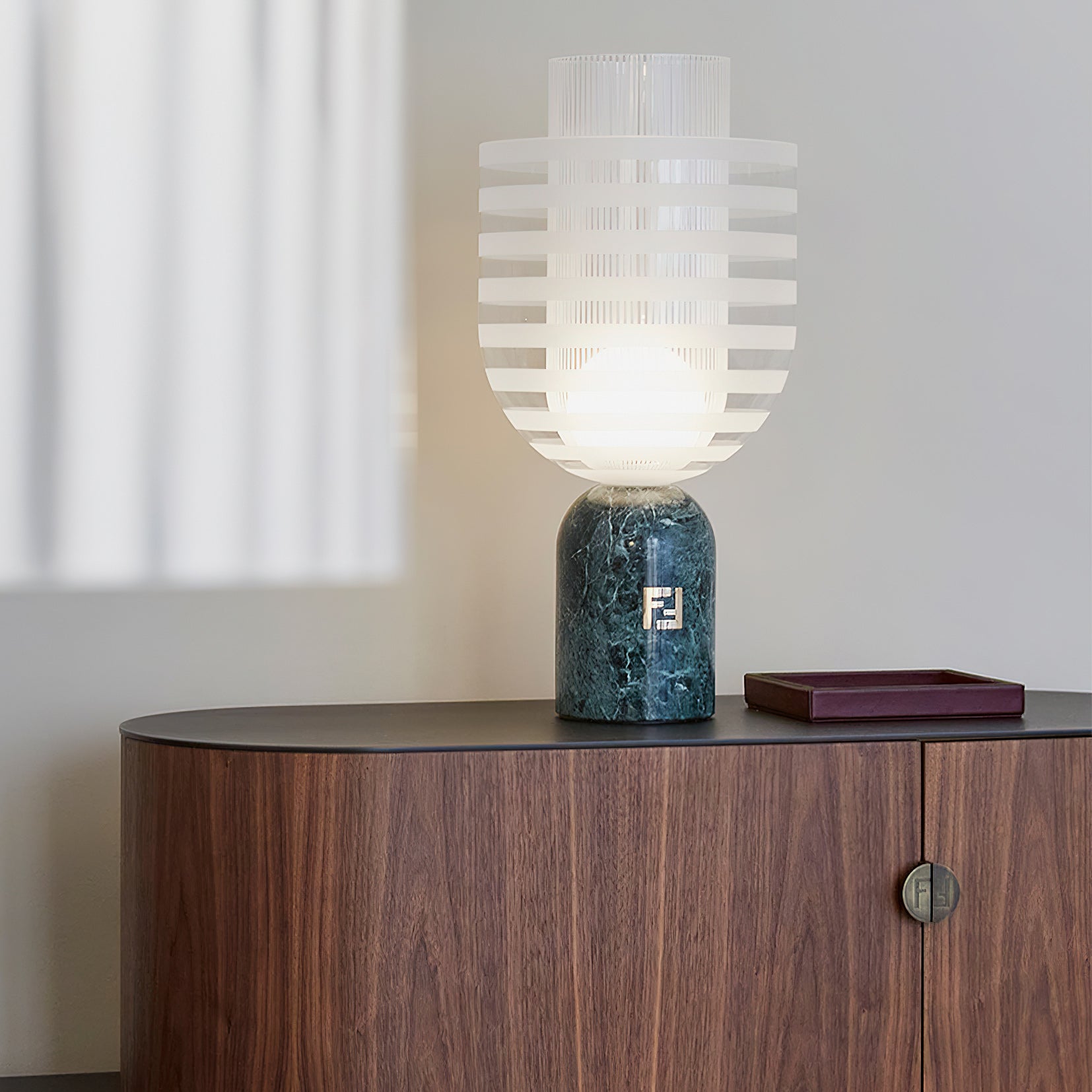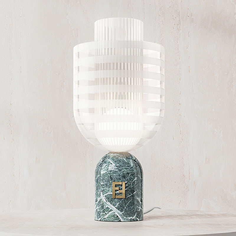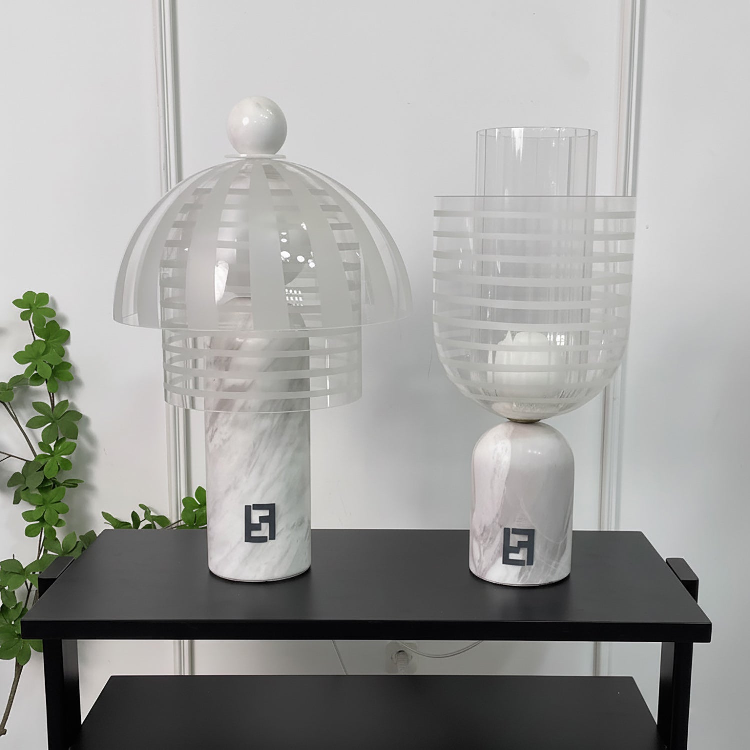 The Striara Marble Table Lamp stands out as a sculptural work of art, combining geometric forms with delicate Murano glass filigree and marble. It serves as an elegant centerpiece, enhancing the refinement of any environment.