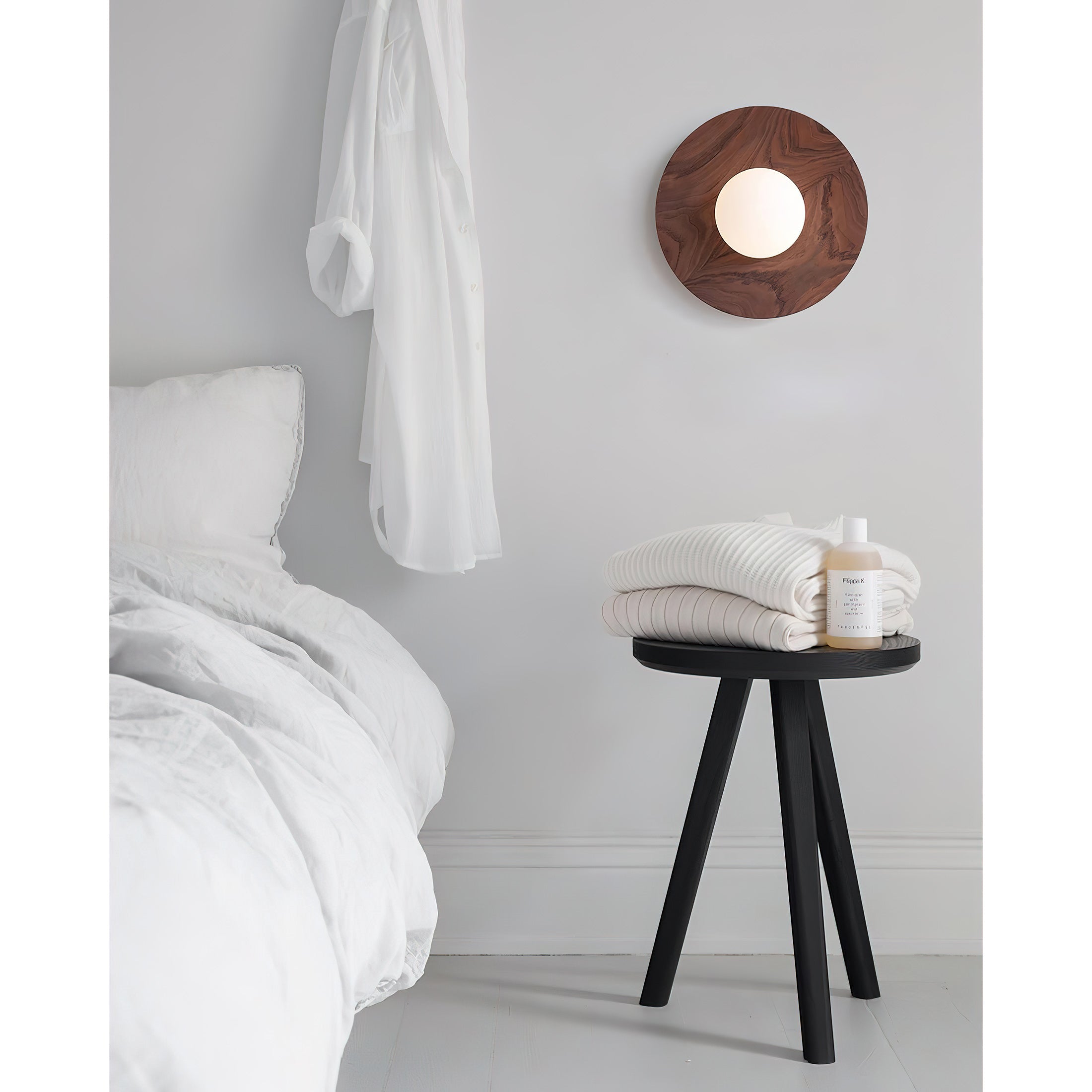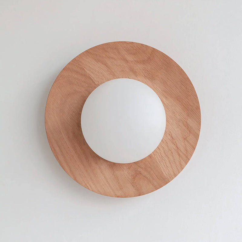 The wooden frame of the Harmonia Globe Wall Light is crafted with precision, highlighting the unique grain patterns inherent in the timber, making each fixture a one-of-a-kind piece. Encased within this wooden embrace is a glass shade, meticulously chosen to diffuse light softly and evenly, creating a cozy, welcoming glow.