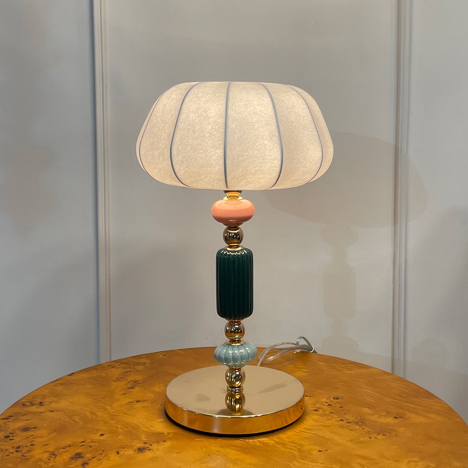 The Topbuti Table Lamp is a table lamp that combines elegance, sophistication, and modernity. Its body is crafted from high-quality metal and meticulously polished, resulting in a warm and lustrous texture. The lamp's unique shape is dynamic and layered. Most striking is its silk-like lampshade, which emits a soft and even glow when illuminated, giving it not only a unique visual appeal but also a delicate tactile feel, showcasing an unparalleled attention to detail.