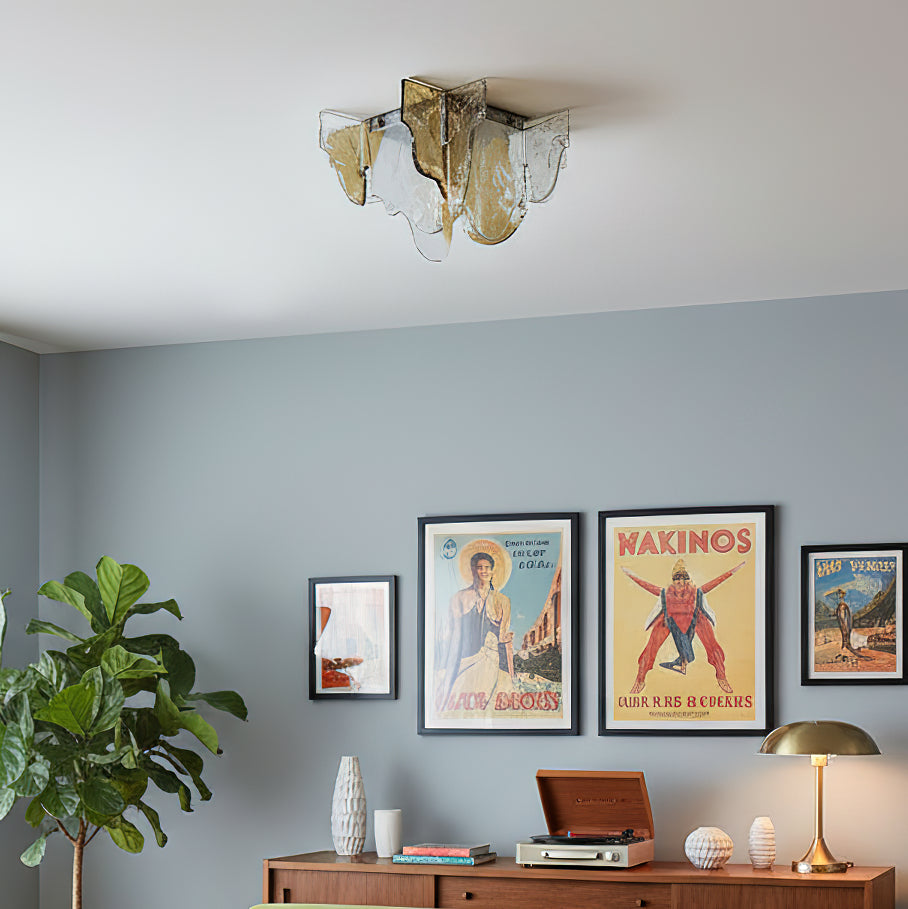 - Inspired by the intersection of the glass workshops of Murano, in the 1960s and modern design trends, this ceiling lamp boasts a simple yet refined aesthetic.