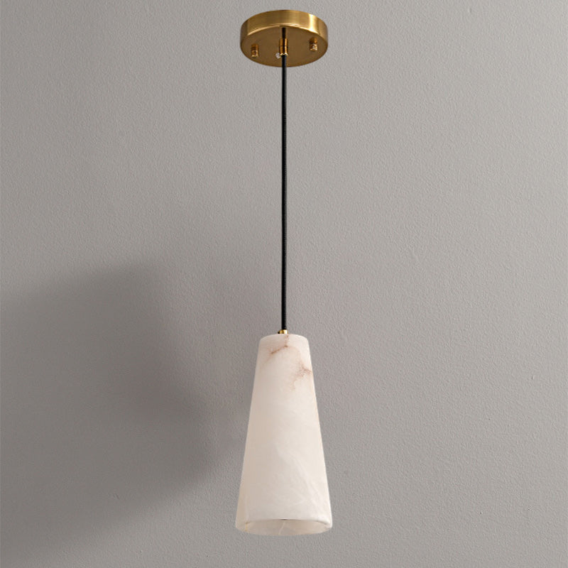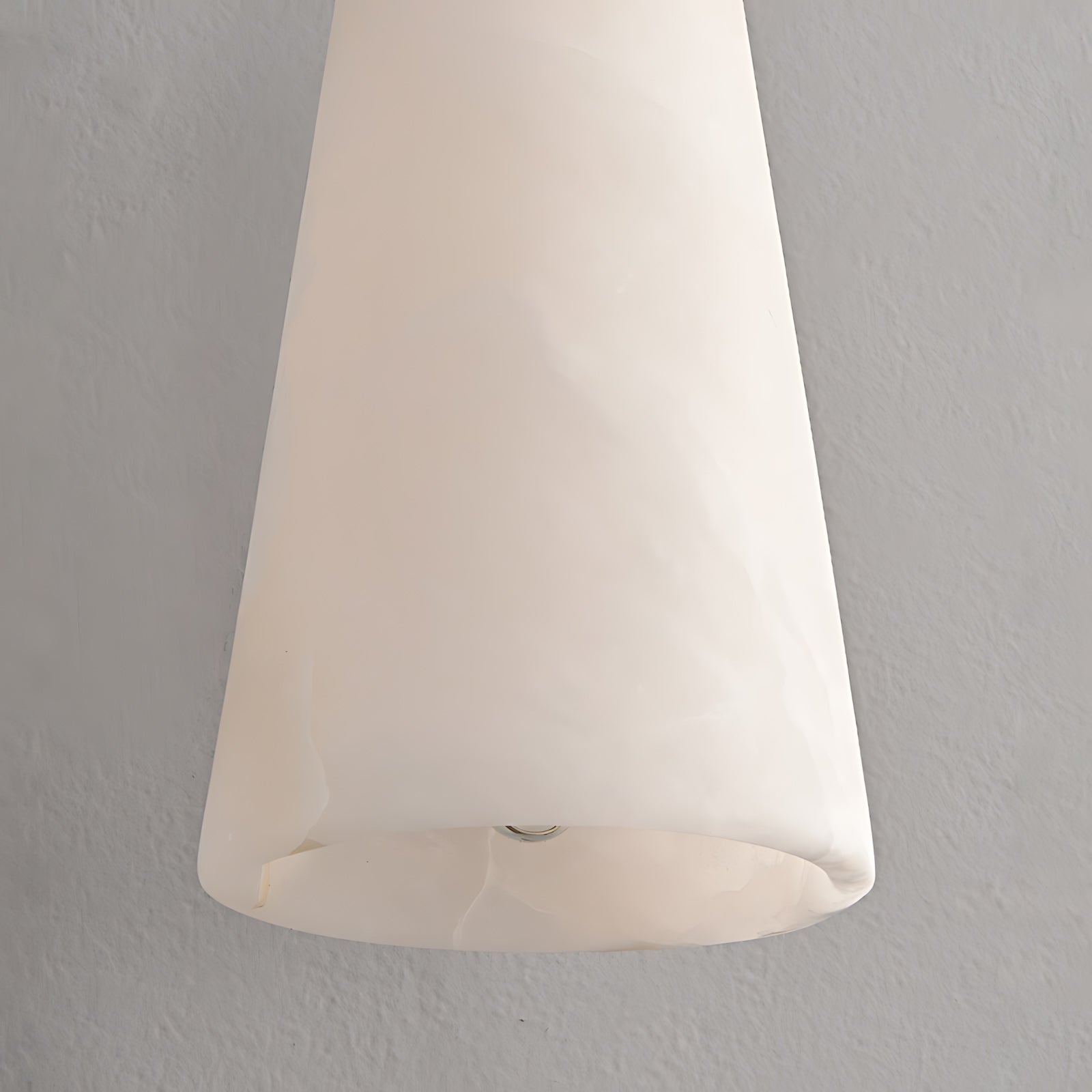 Crafted from natural Spanish alabaster, the Capus Alabaster Pendant Lamp softly diffuses a warm, ambient glow. Its refined conical silhouette and smooth, translucent texture bring organic elegance to kitchens, dining areas, or living rooms, bedroom.
