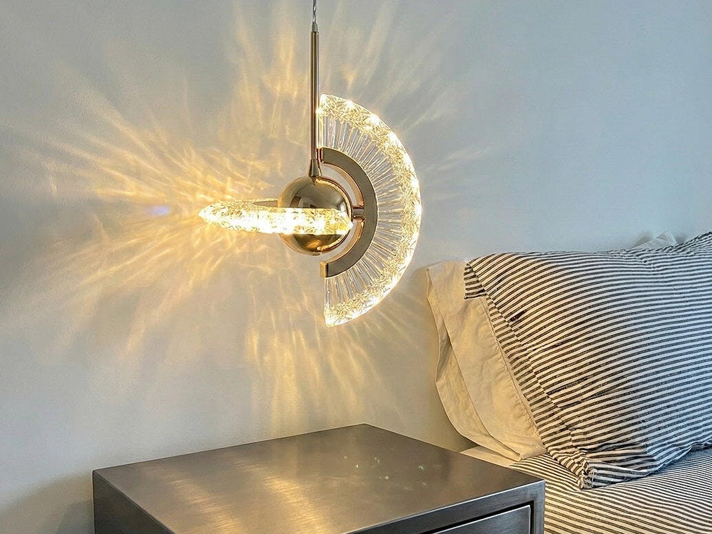Add a touch of glamour to any bedroom with the Rose Gold Crystal Brillare Pendant Lamp. Made with a sleek and creative design, the lamp’s adjustable shade ensures it can be customized to fit any space. The sleek rose gold hue adds luxury to any décor.