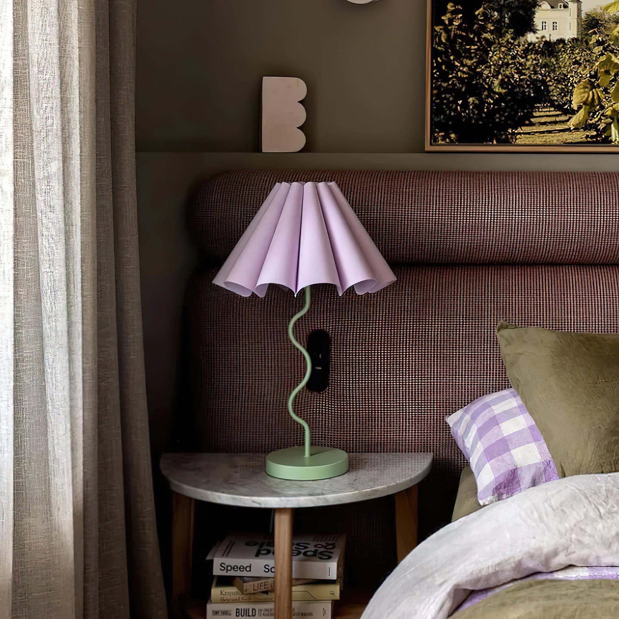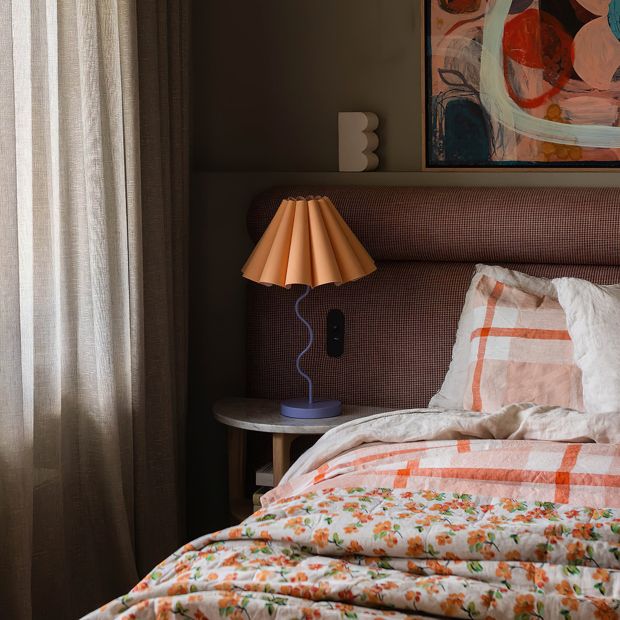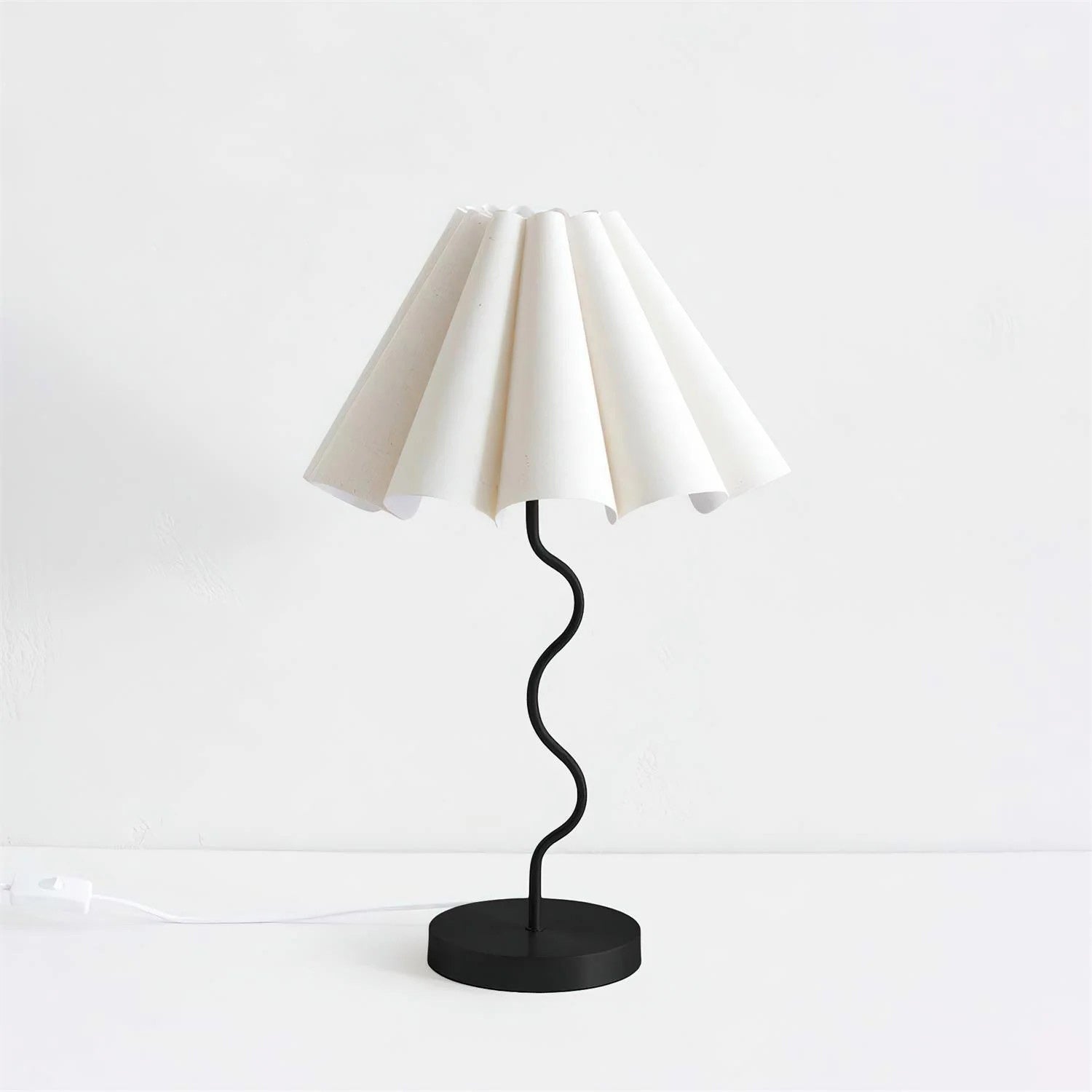 Introducing our new vintage-style lamp, the perfect addition to any home decor. With a fabric fluted lampshade and a soft squiggly metal base, this Cora Table Lamp will add a touch of elegance to your space. It can significantly enhance the sense of hierarchy and personality of the space, allowing you to freely match different artworks to show your personal style.