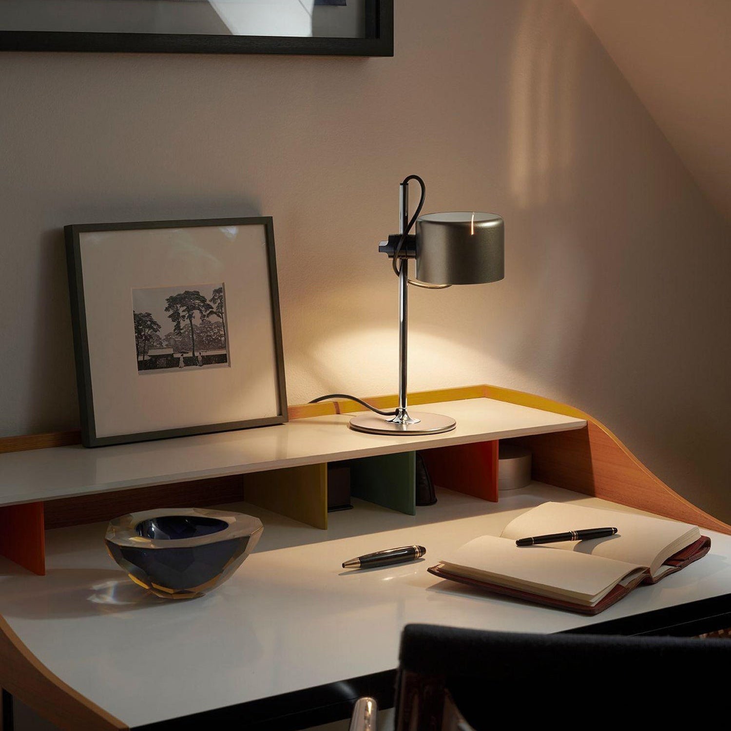 The Coupe Table Lamp simple, ingenious mechanism that connects the stem to the head makes it possible to direct the beam in several directions, by moving the dome up, down and sideways.