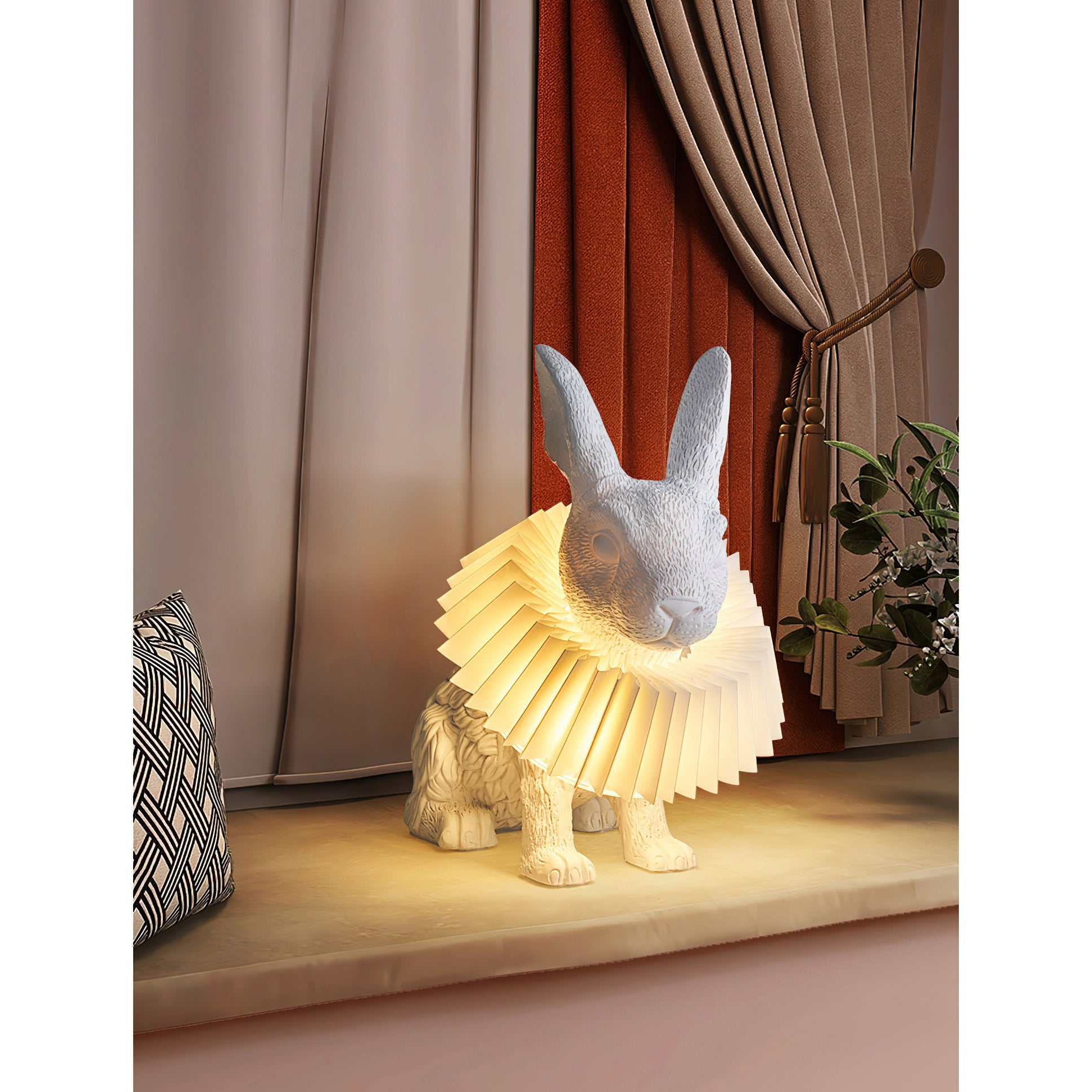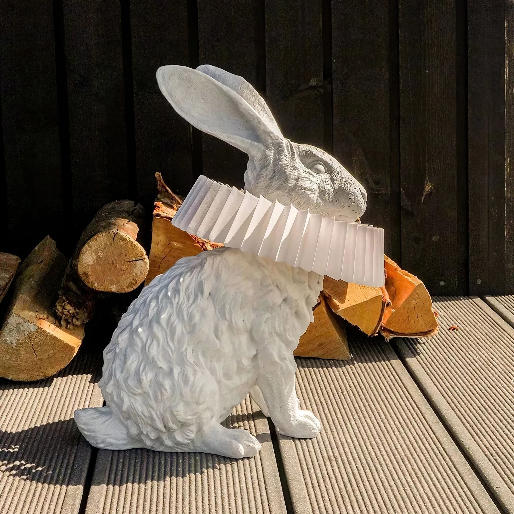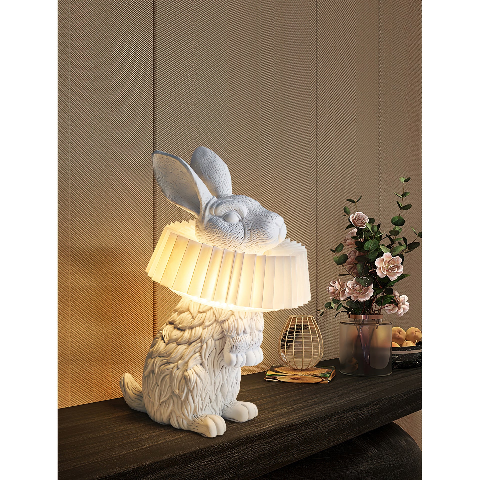 - Inspired by Alice in Wonderland, this rabbit design uniquely features ruffle collar details within its sculpted form, bringing a captivating charm to your home.