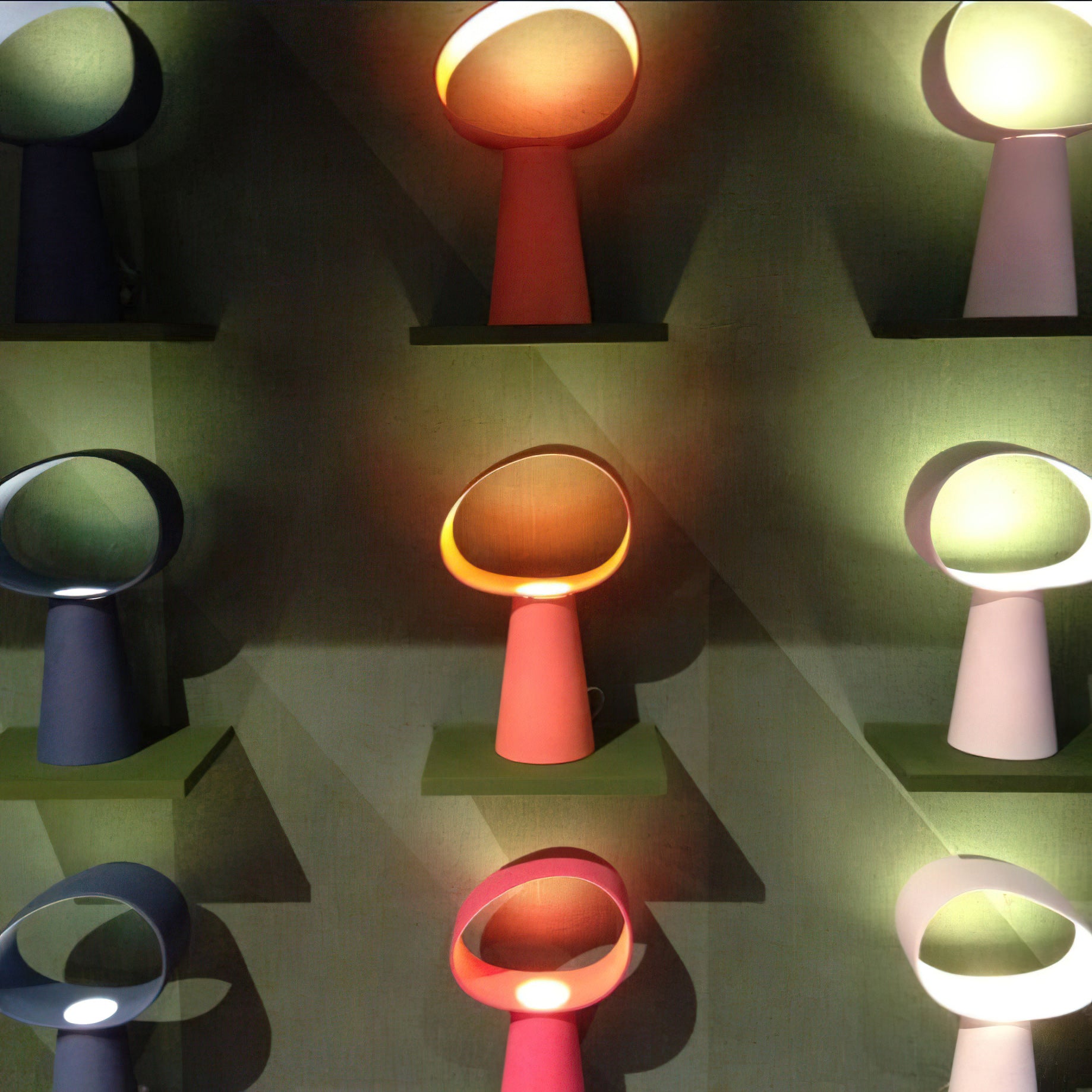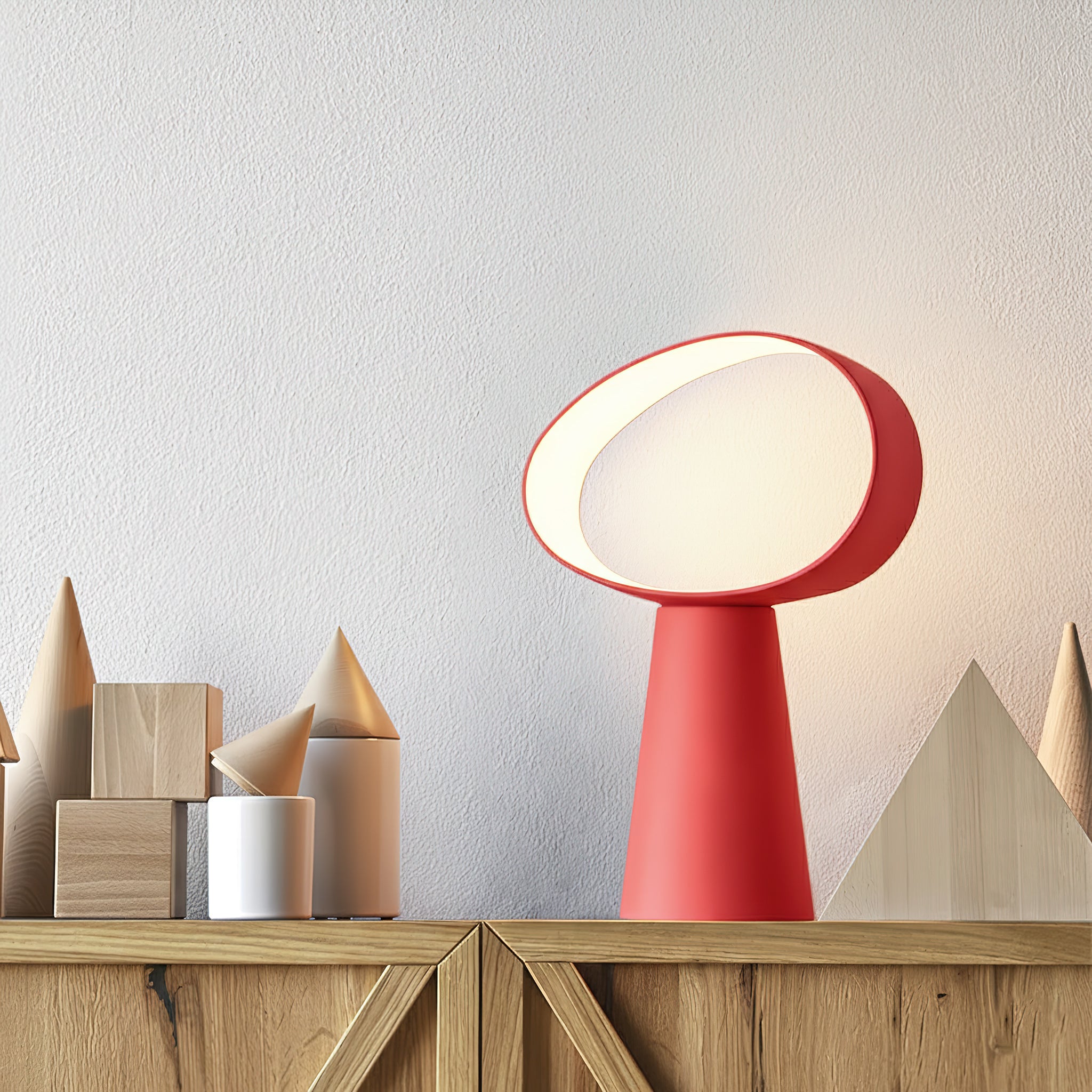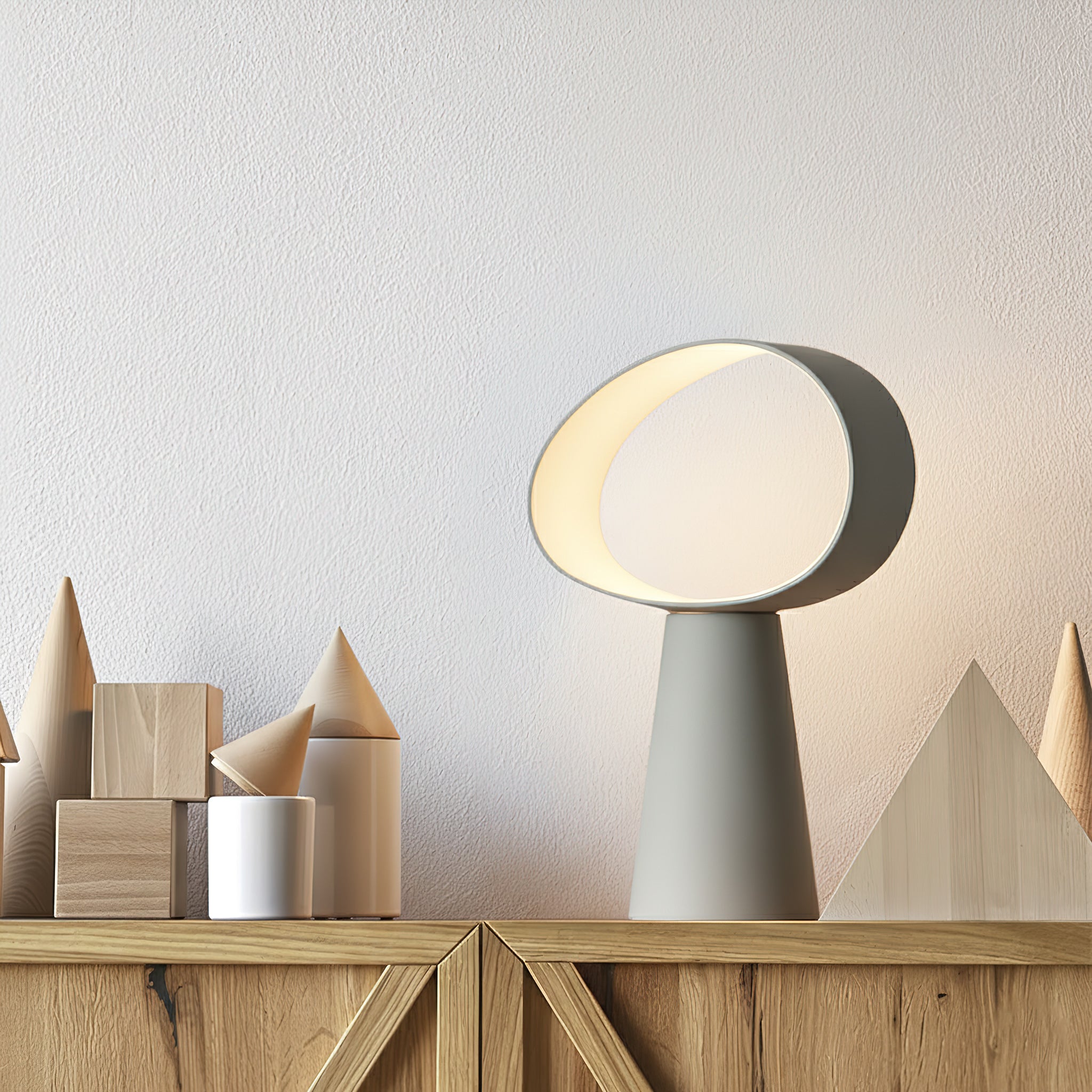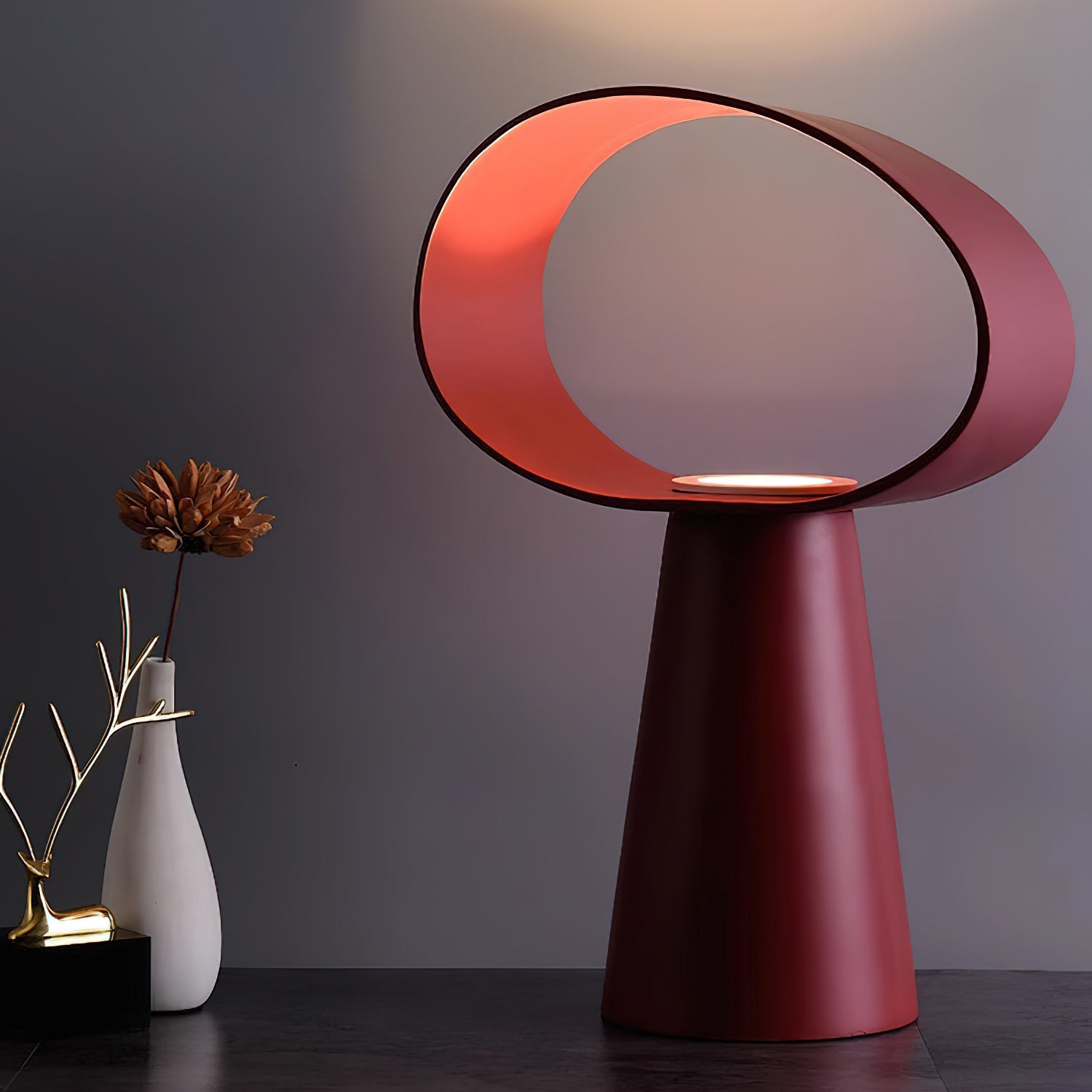The Eclipse Table Lamp stands out as a highly dynamic piece that engages with its surroundings through a vibrant and striking presence. Crafted from resin, it provides a smooth, tactile experience.