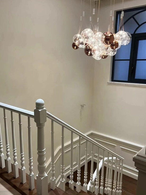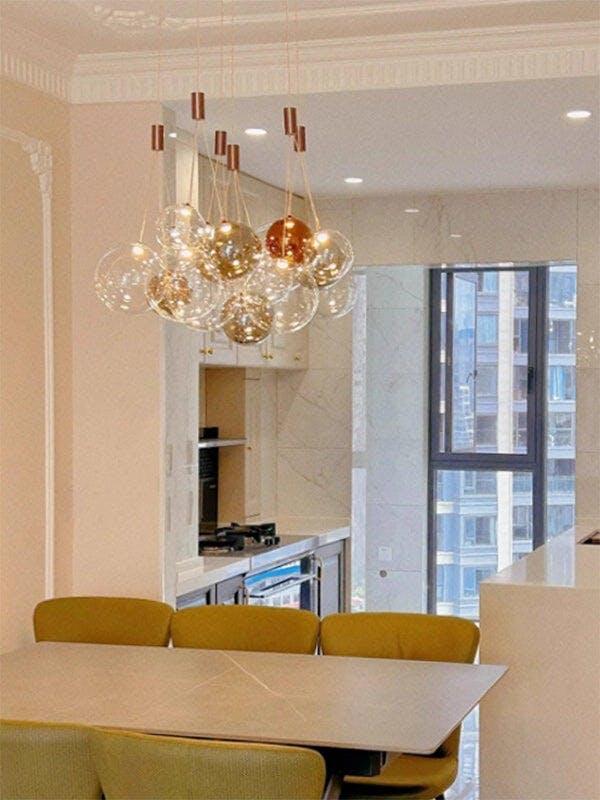 The Cluster Bubble Pendant Light is a perfect combination of design and functionality. Its delicate iron wires support the transparent balls, creating a magical atmosphere with its efficient lighting. Its modular design allows for easy and fun customization, making it ideal for illuminating and adding character to any space.
