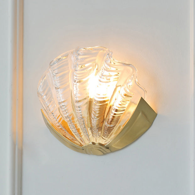 Enhance your interior with the timeless elegance of the Seashell Glass Wall Sconce, an ideal addition for hallways, bedrooms, or adjacent to mirrors. Its textured glass shell gently disperses light, producing a cozy and welcoming atmosphere. Designed to complement both traditional and contemporary settings, this fixture seamlessly elevates your home décor with sophistication.