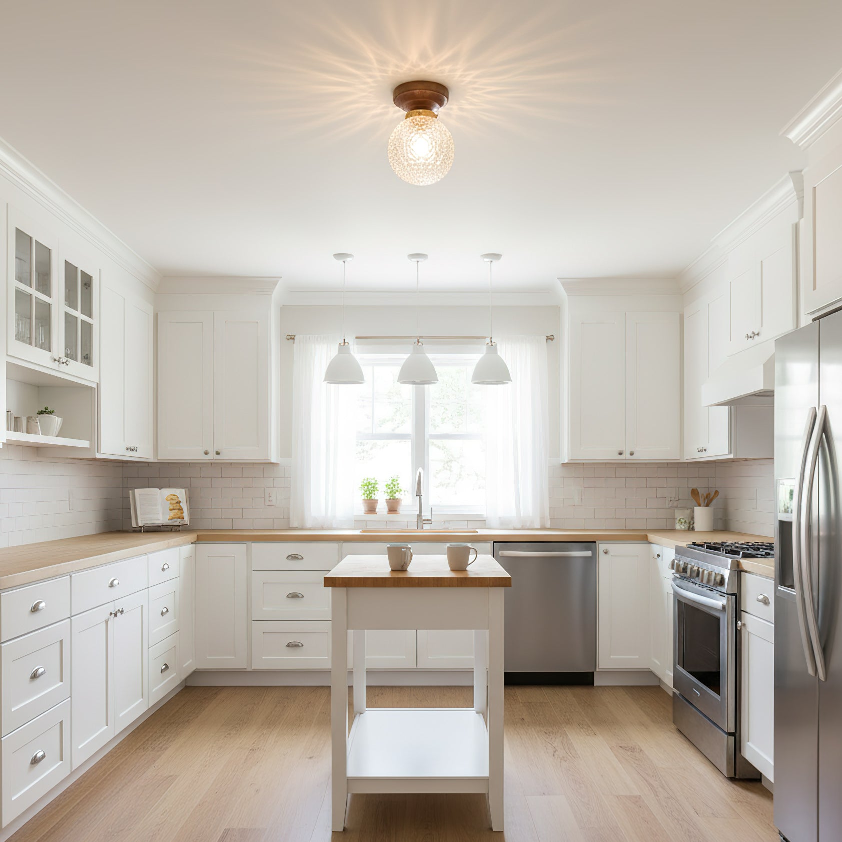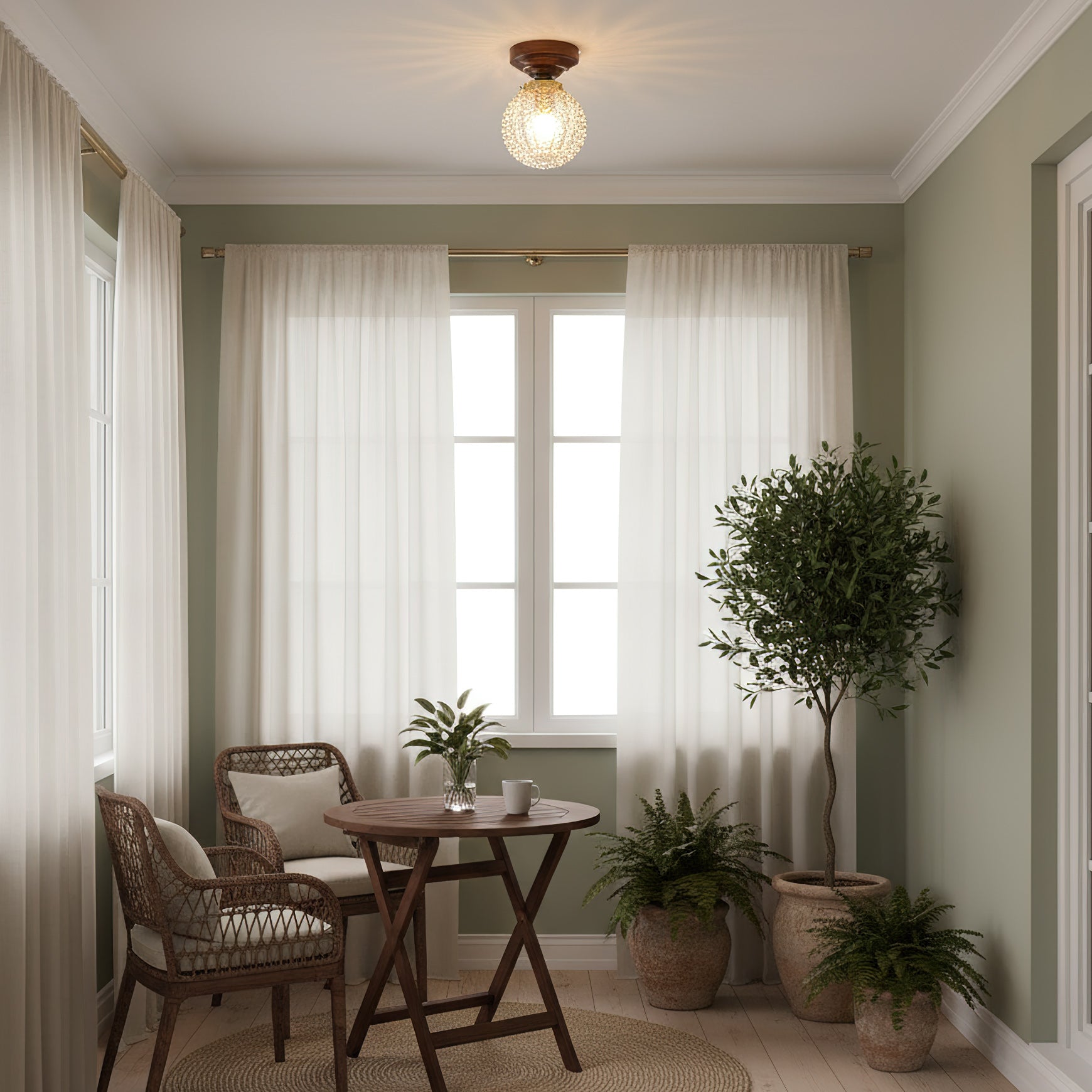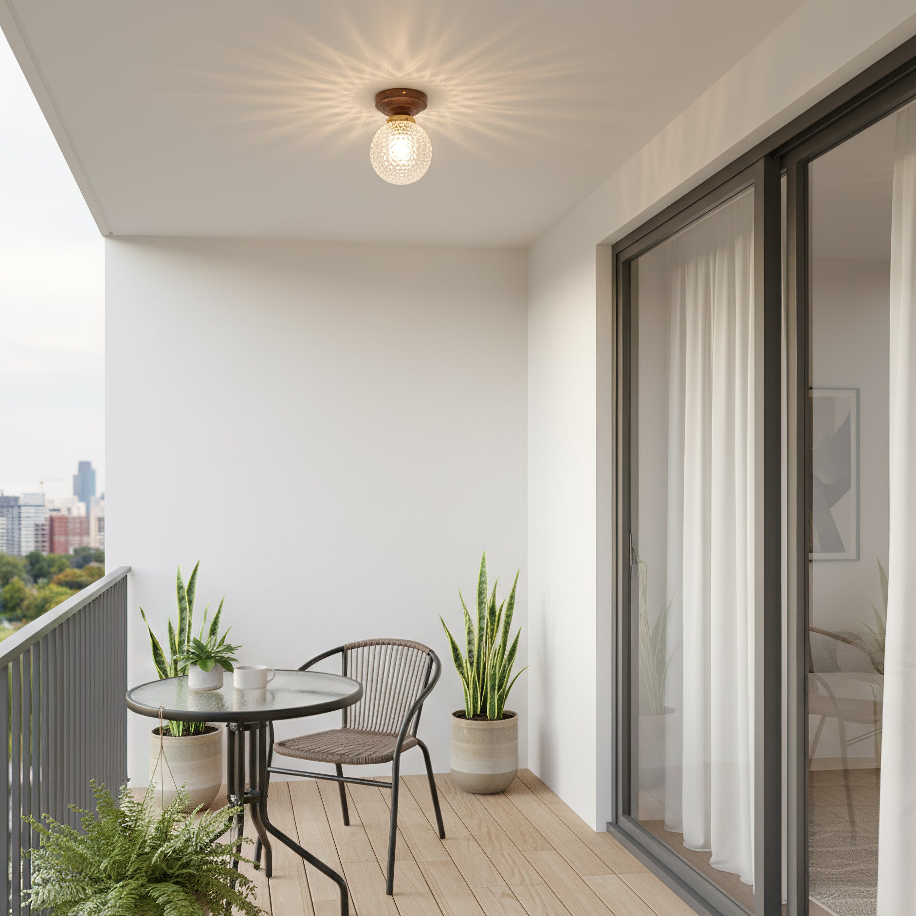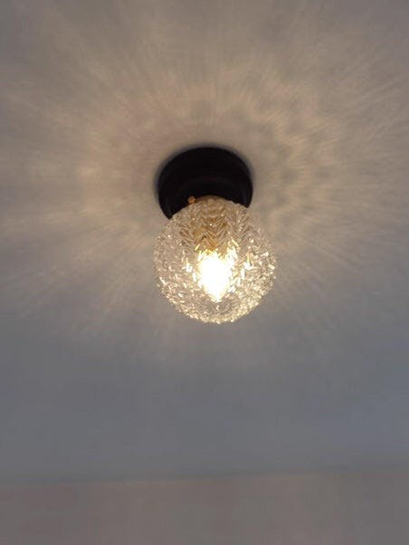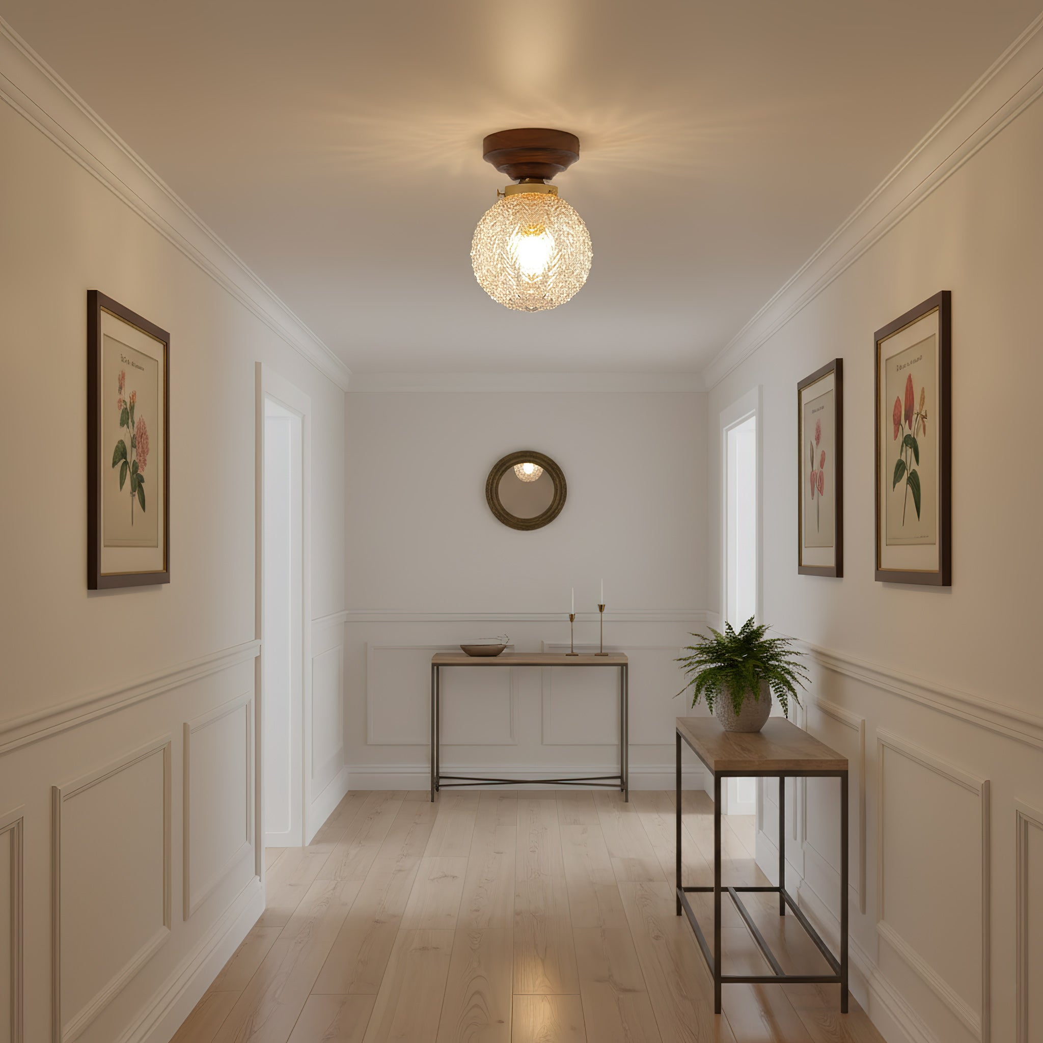 The Lumidora Ceiling Lamp brings contemporary charm to small spaces. With a textured glass globe, warm wooden base, this ceiling light adds a soft, radiant glow to hallways, bathrooms, or any cozy corner needing stylish illumination.