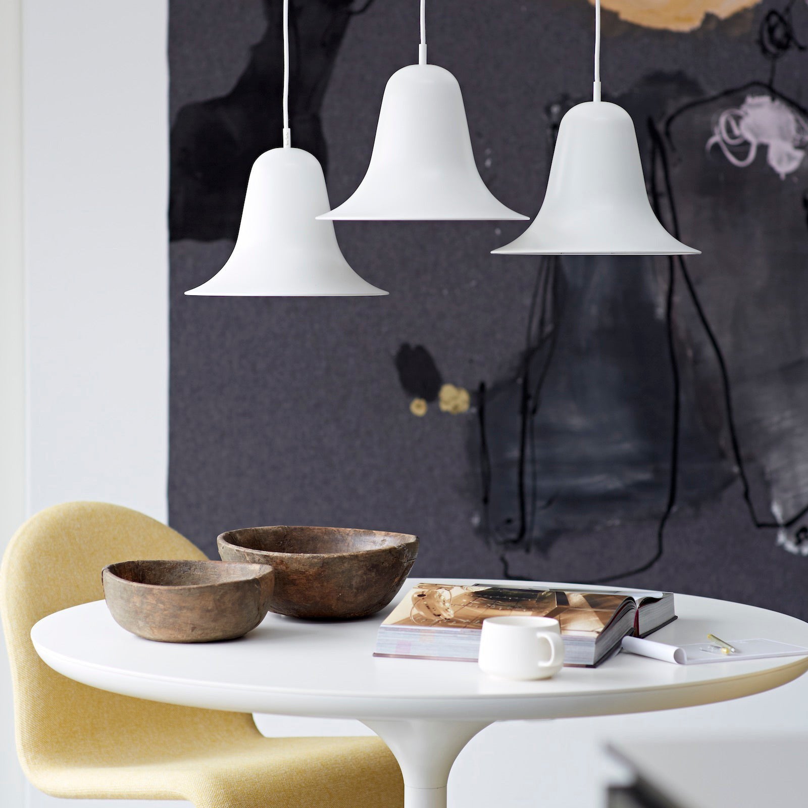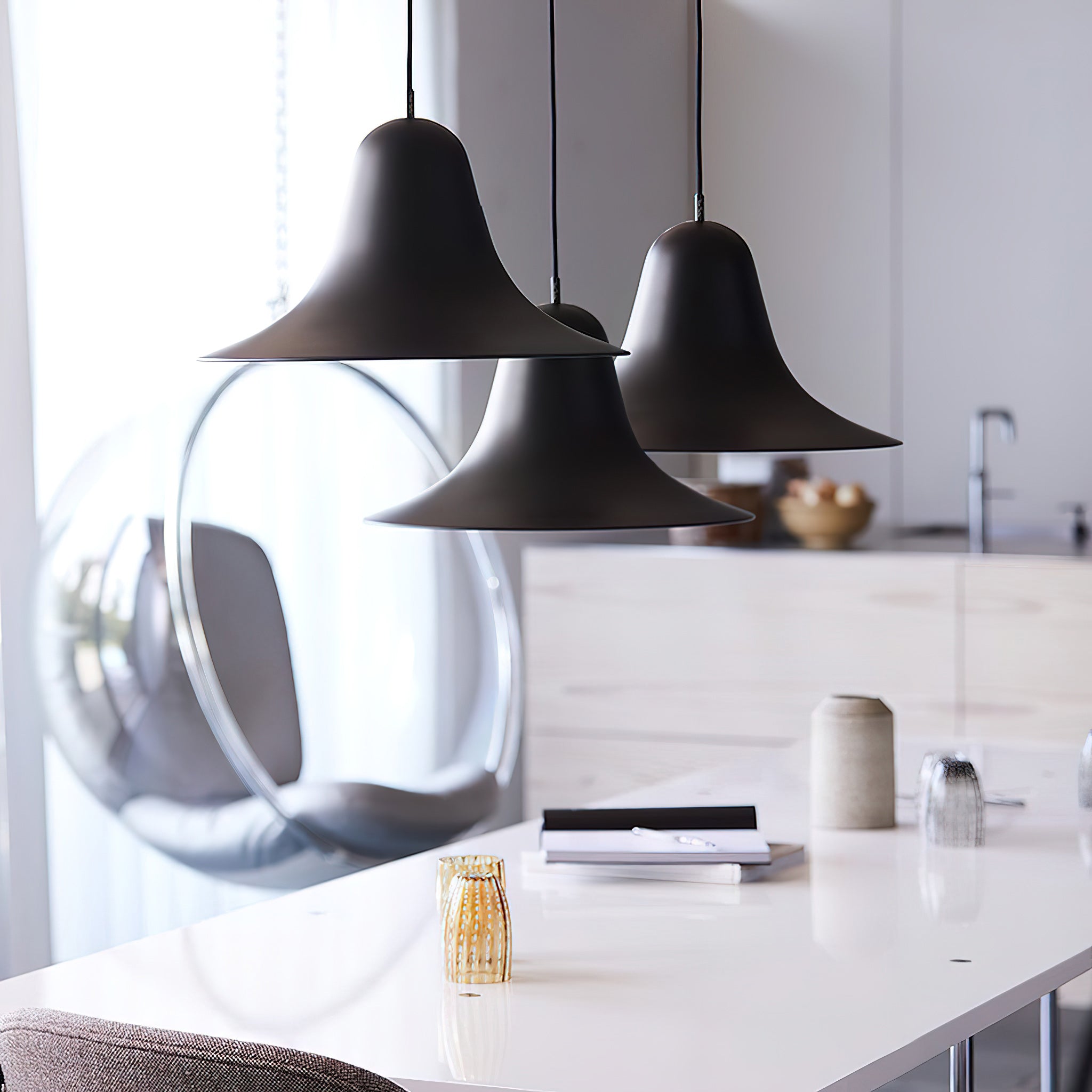 The Pantop Bell Pendant Lamp is a refined expression of the designer's signature fusion of simplicity and elegance. Characterized by its flared, bell-like shade, the pendant casts a soft, even light that enhances both intimate and expansive spaces. It is available in an array of bold colours - perfect for dining or leisure areas and each carefully selected to add its own personality and mood to the collection.