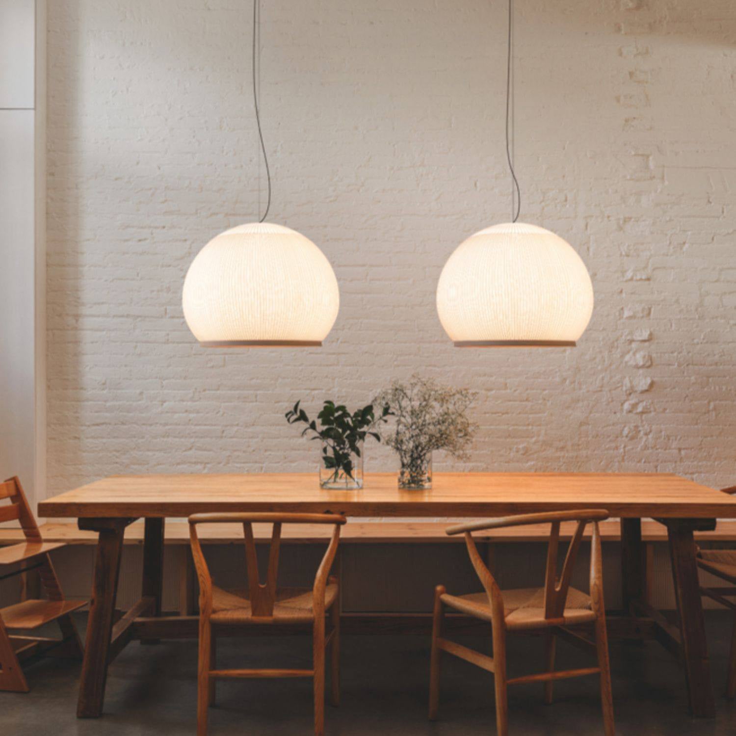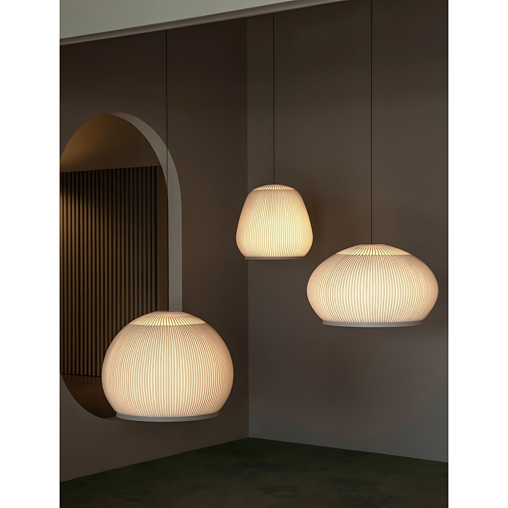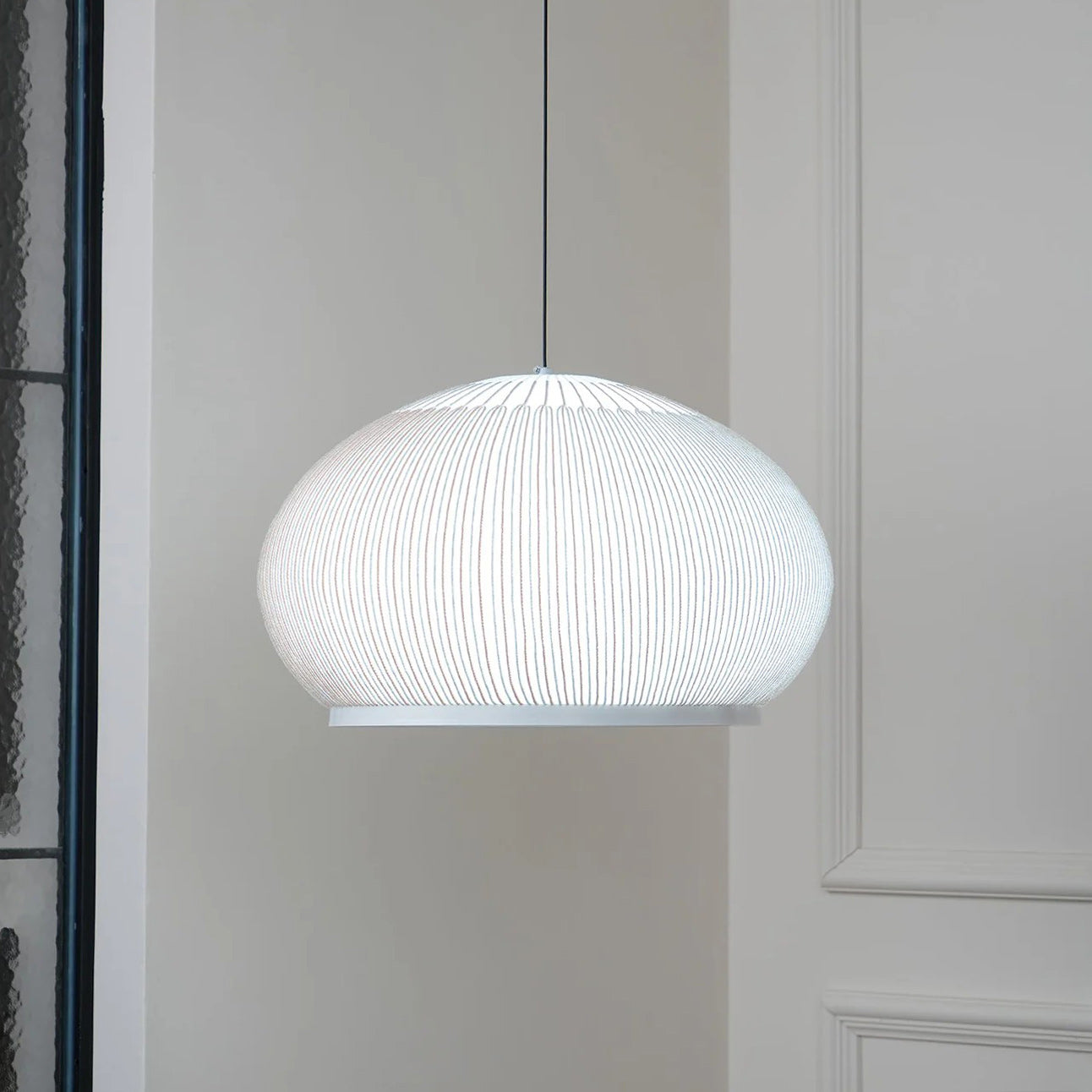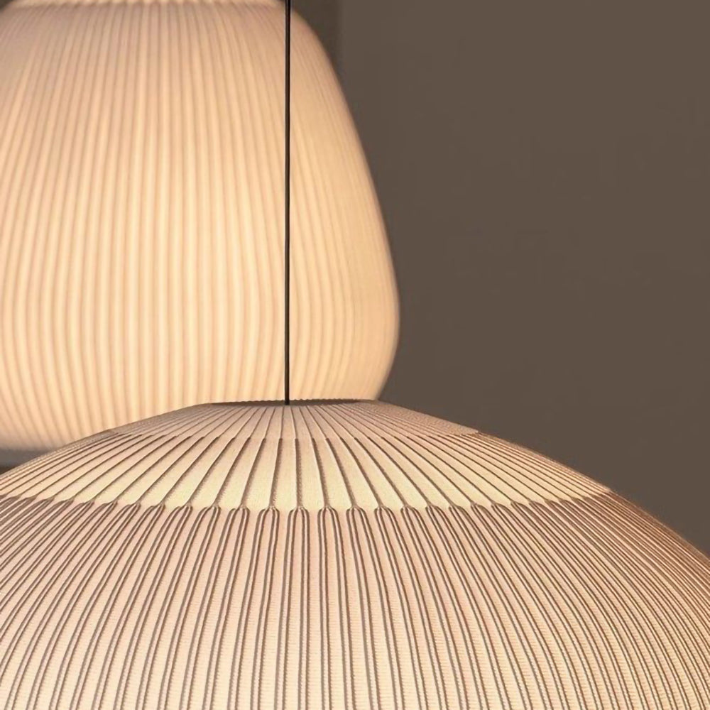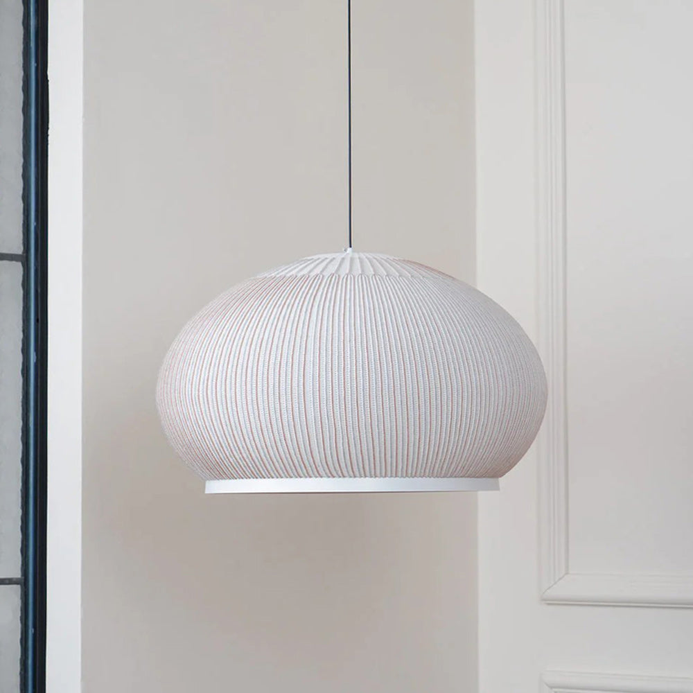 The Textured Dome Lantern Pendant Lamp exhibits a vertically striped and knitted pattern, enhancing the fixture's sophistication and providing a captivating illumination. The clean, crisp White finish complements contemporary spaces while beautifully absorbing light. This pendant is perfect for kitchens, dining rooms, or bedrooms. Easy installation and dimming capabilities make the Knit pendant lamp the perfect solution for professionals looking for quality indoor lighting with an abundance of charisma.