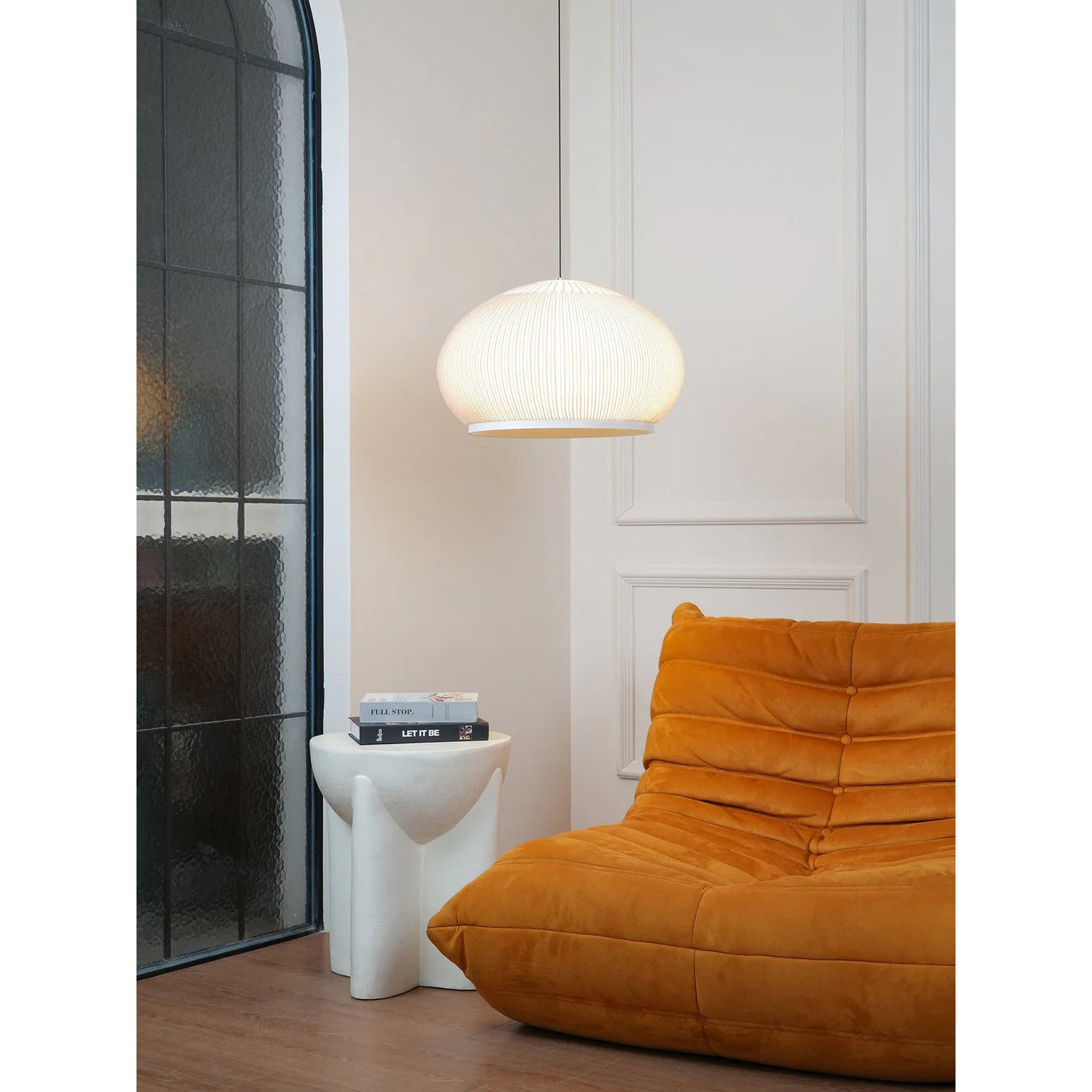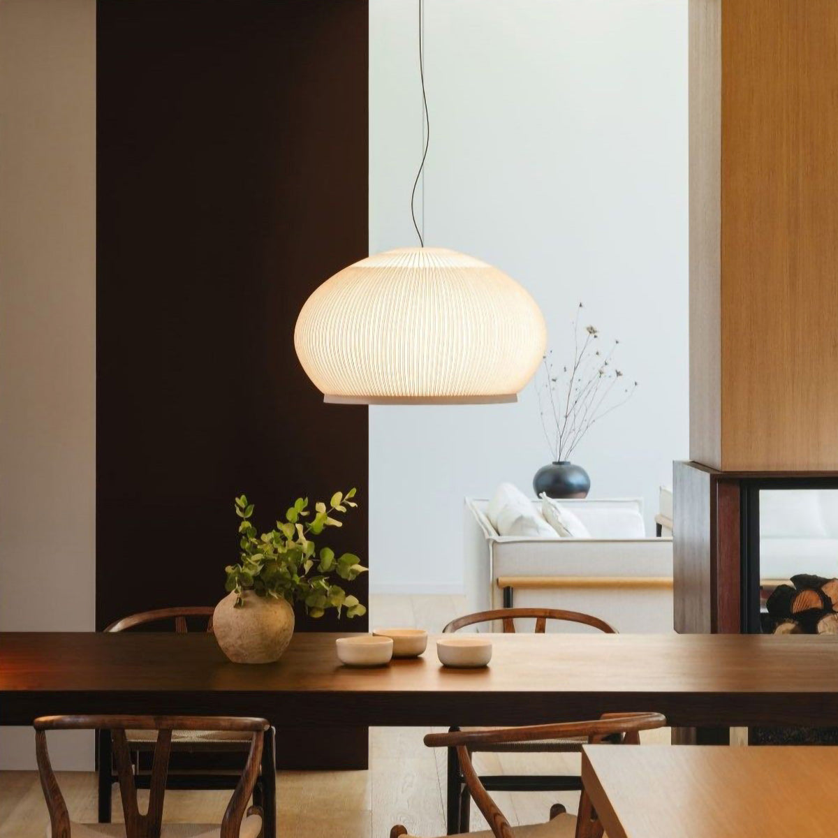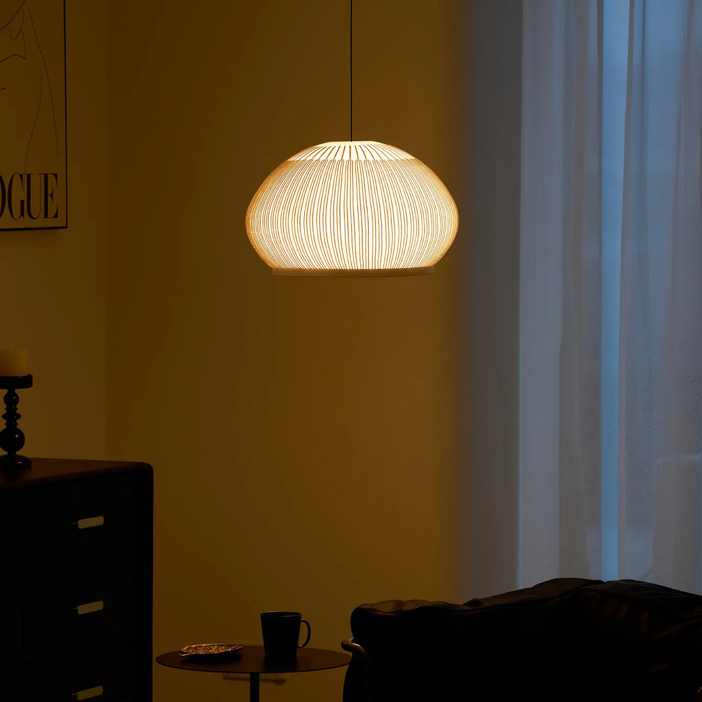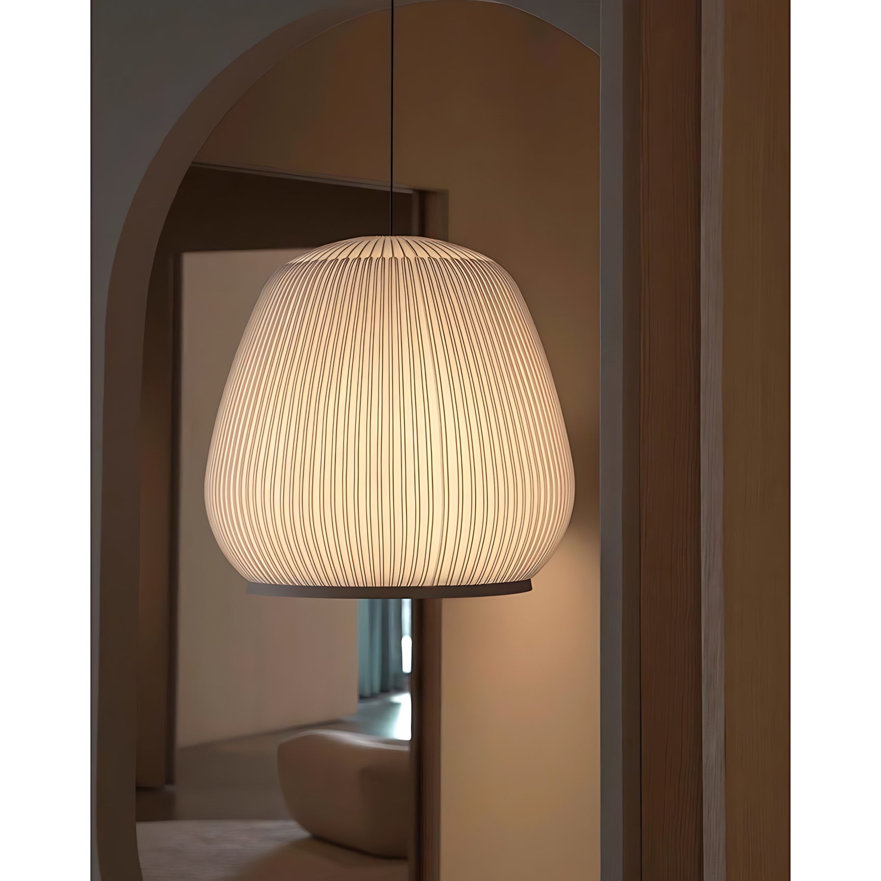The Textured Dome Lantern Pendant Lamp exhibits a vertically striped and knitted pattern, enhancing the fixture's sophistication and providing a captivating illumination. The clean, crisp White finish complements contemporary spaces while beautifully absorbing light. This pendant is perfect for kitchens, dining rooms, or bedrooms. Easy installation and dimming capabilities make the Knit pendant lamp the perfect solution for professionals looking for quality indoor lighting with an abundance of charisma.