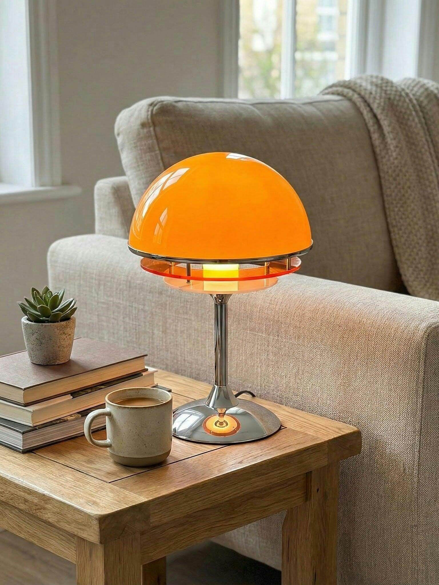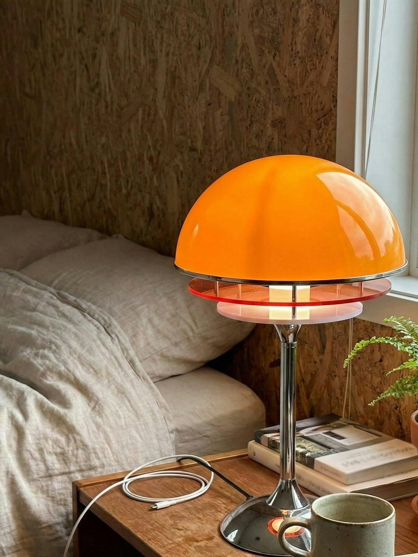 • Inspired by Bauhaus design and trending Maillard orange tones, this retro lamp is a stylish statement piece for your bedroom, living room, or reading corner.