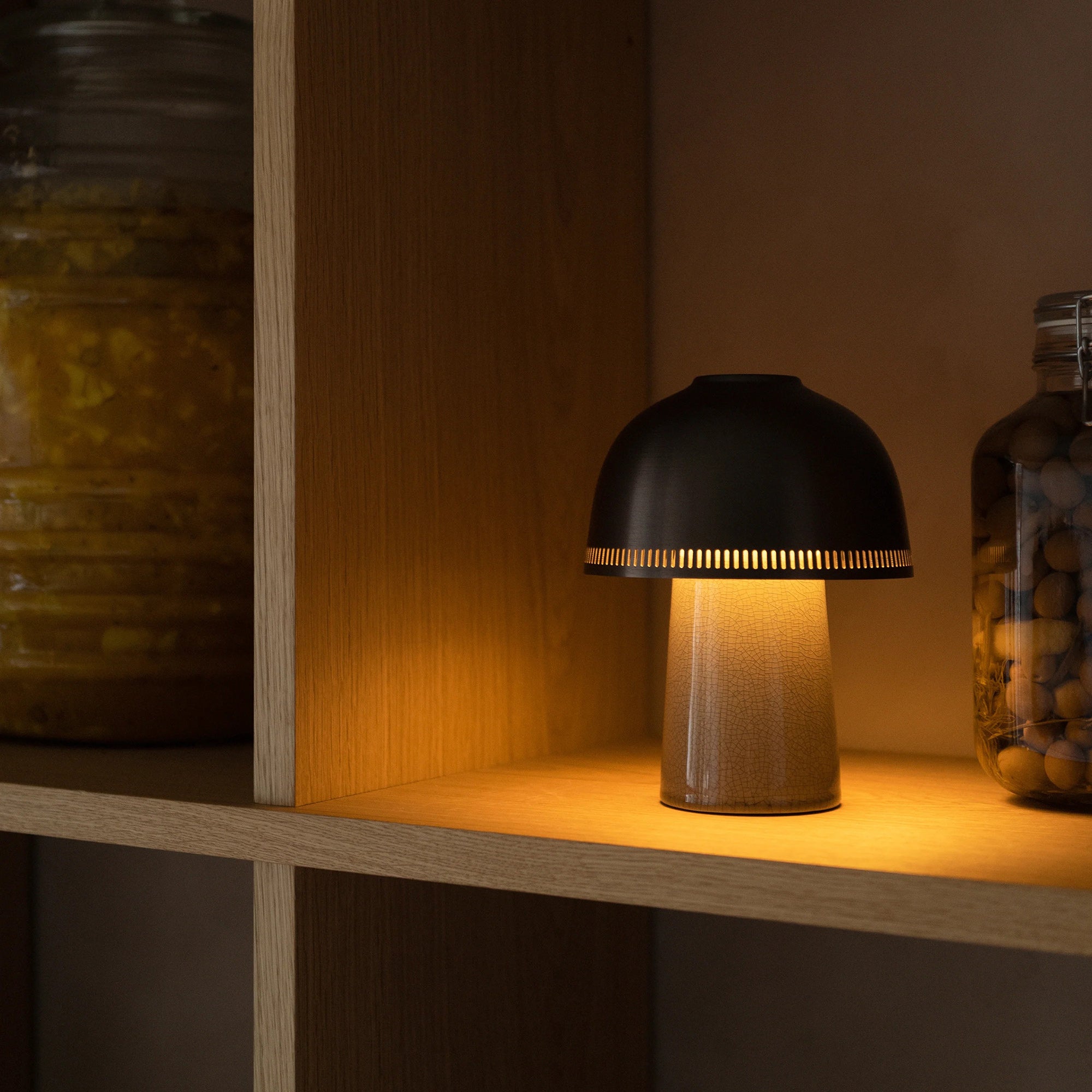 Named after the traditional Japanese pottery technique, Raku Table Lamp is a compact lamp with a considerable presence. Drawing inspiration from the age-old art form, the lamp features a hand-sculpted ceramic base with a crackle glaze that varies slightly in each piece, serving as a reminder to enjoy the idiosyncracies of natural materials.