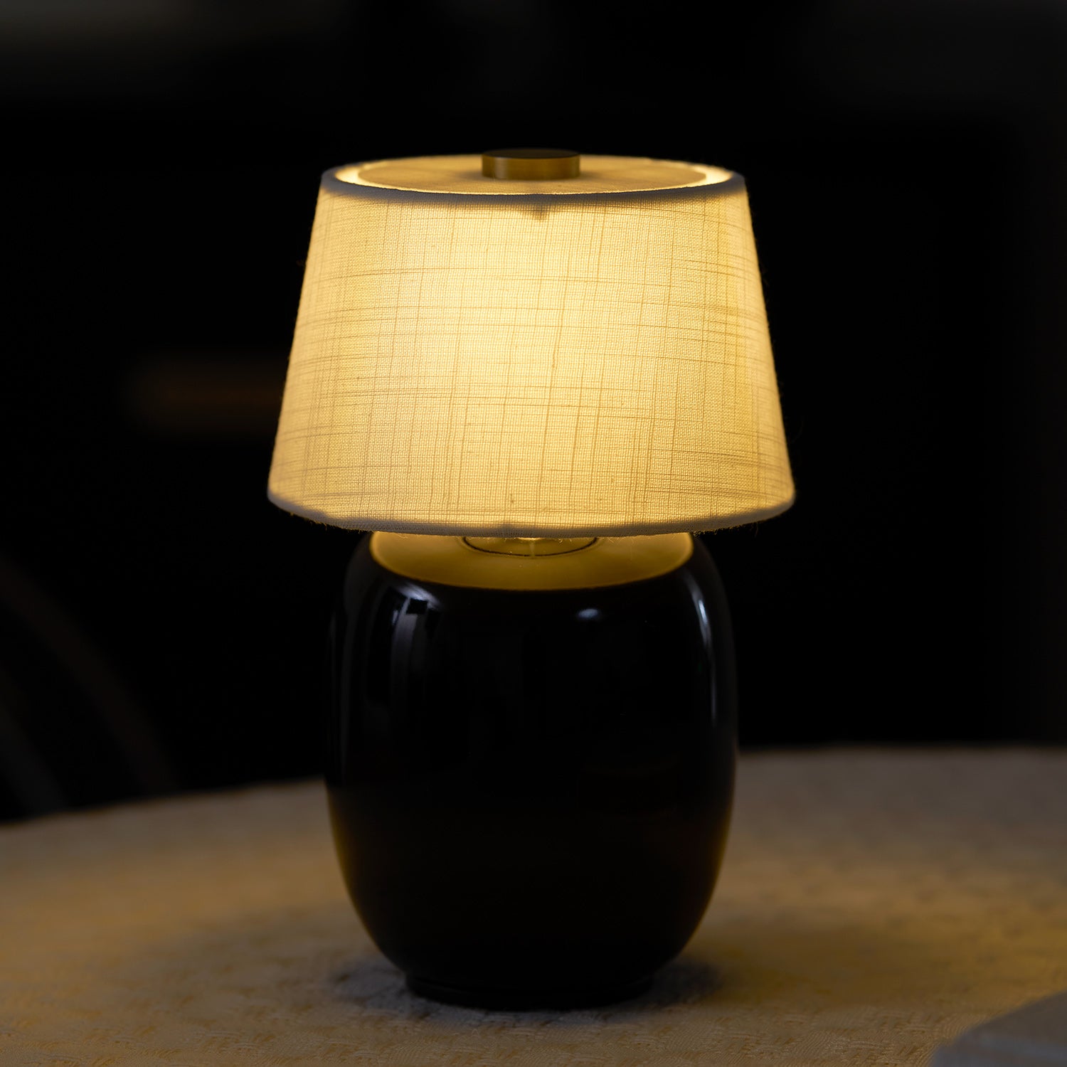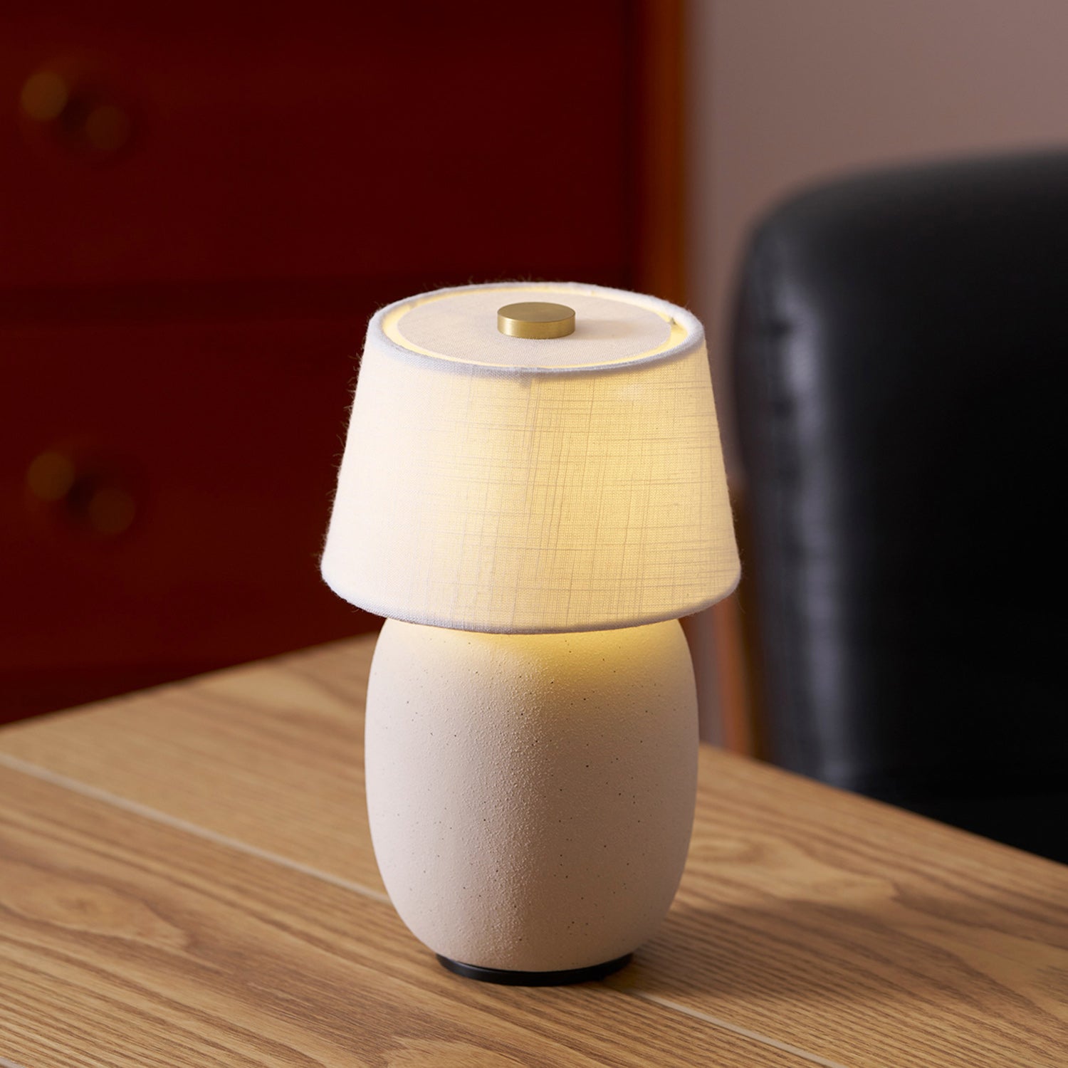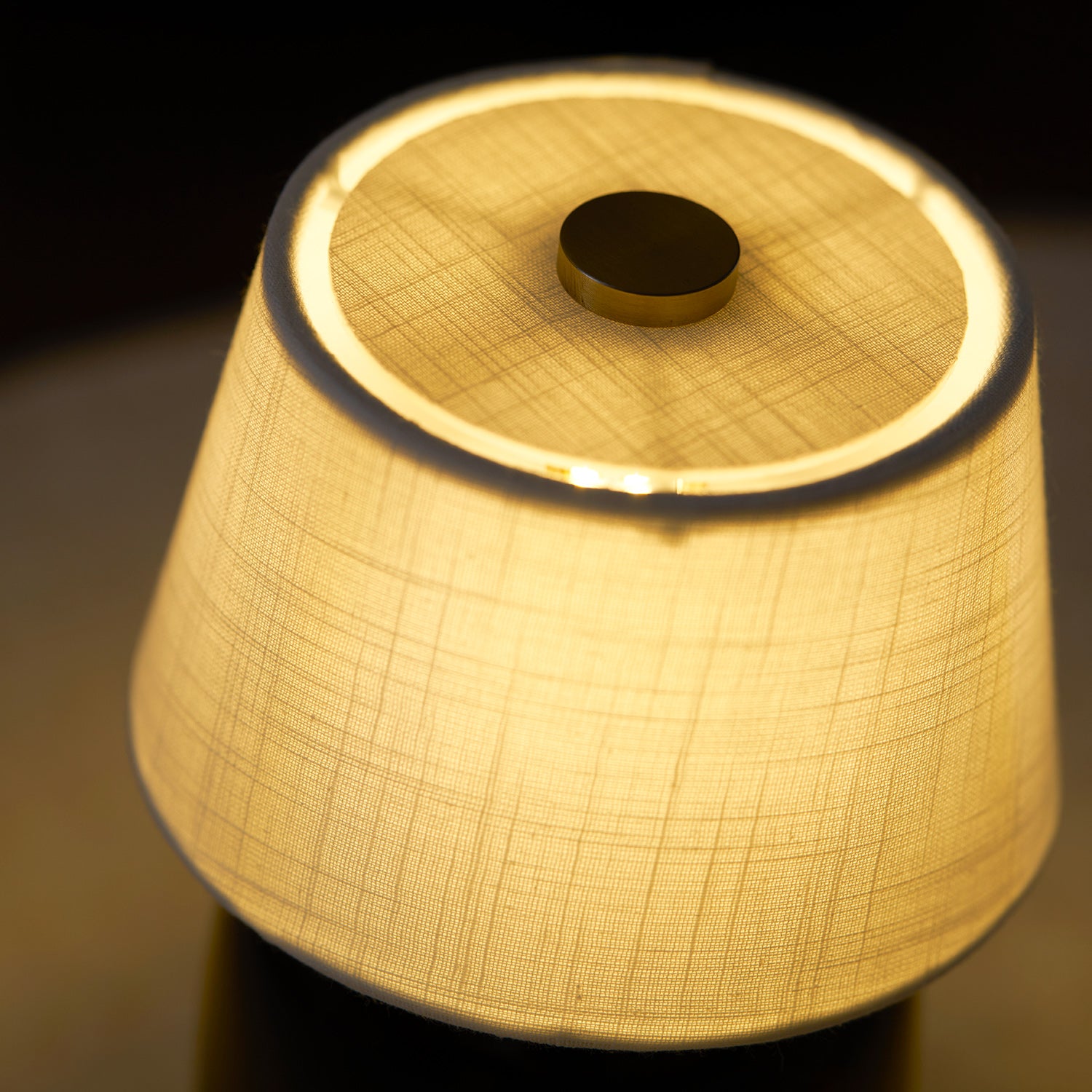 The Torso Petite Table Lamp is cozy, the diminutive design brings a sense of intimacy to tabletops, replacing the need for candles thanks to its soft, ambient light, satisfy to suit mood and requirement. At the touch of a finger, a brass button on the linen canvas shade effortlessly turns the light on and off. As long as it is fully charged, it can be used easily anytime and anywhere.