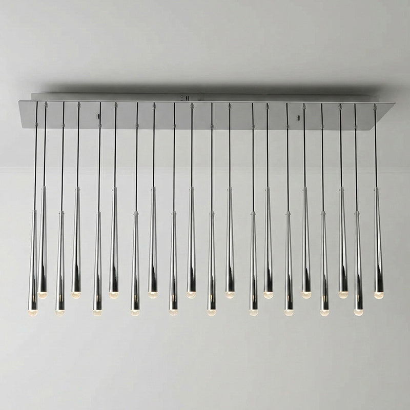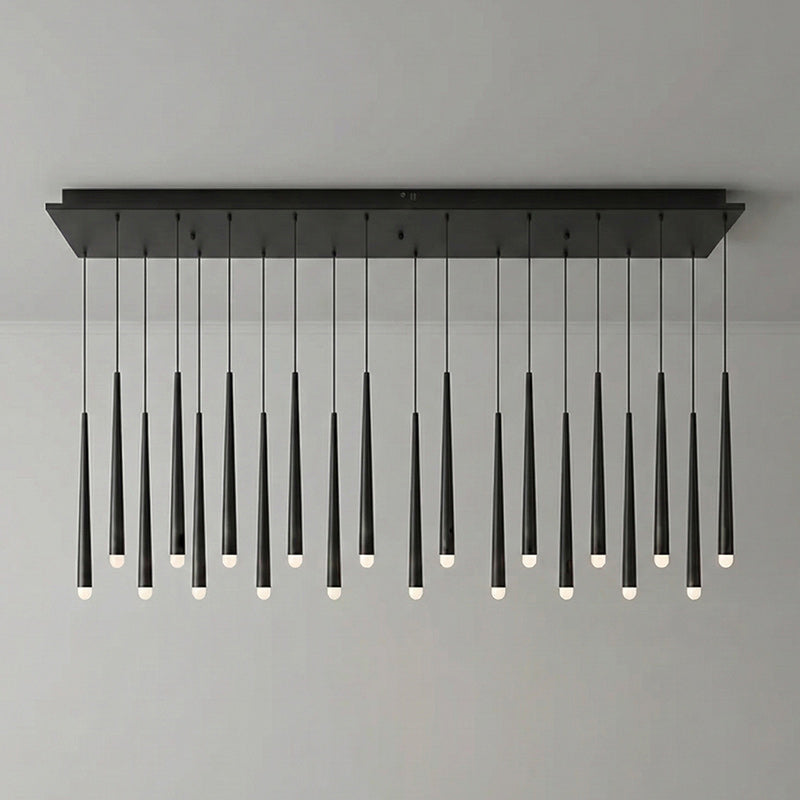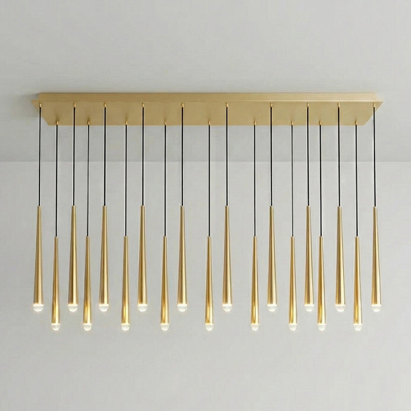 Aquitaine Loog Chandelier | Inspired by French minimalist lighting of the 1960s, Designer features a cluster of solid brass forms suspended from slender black cords.