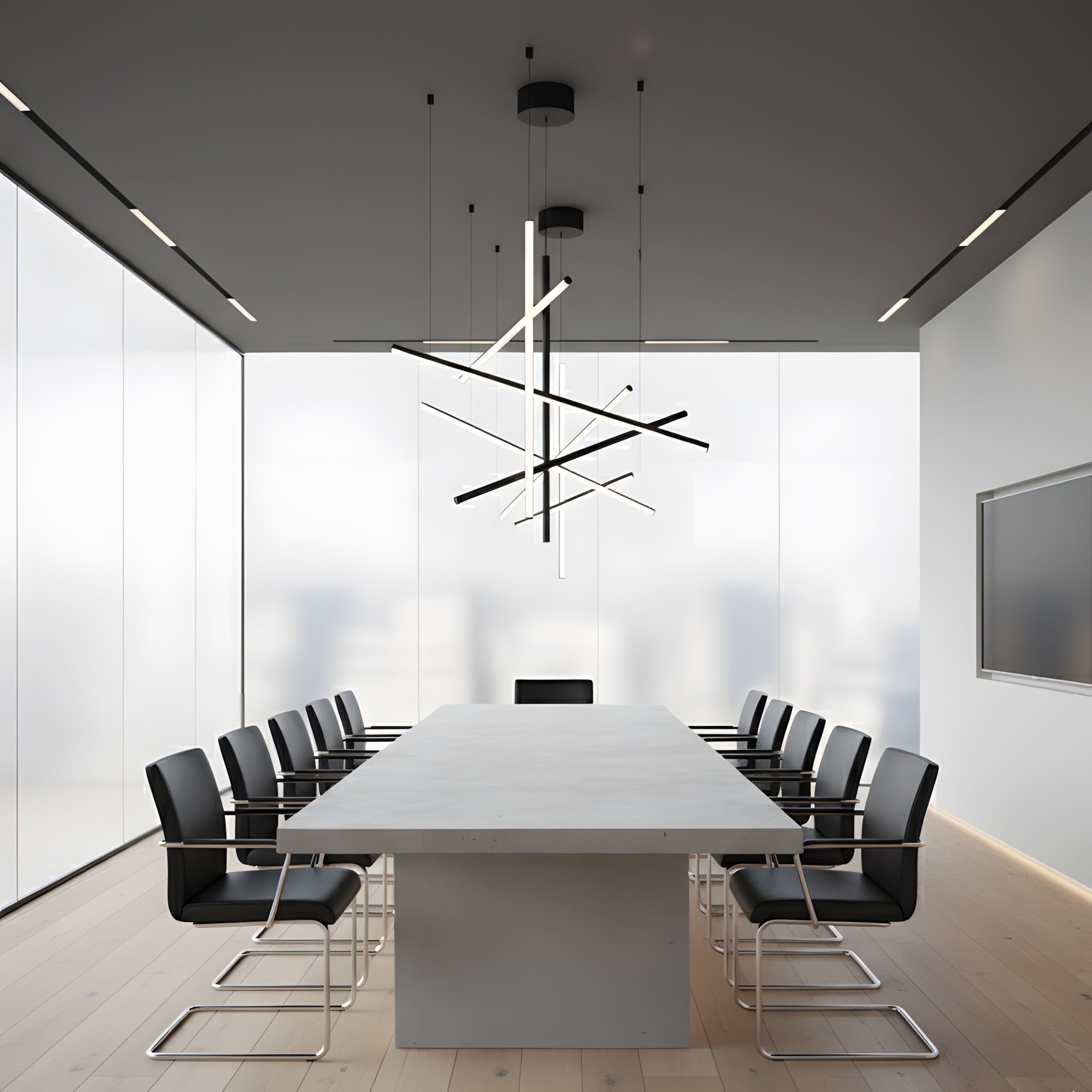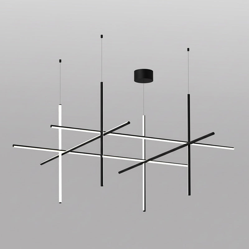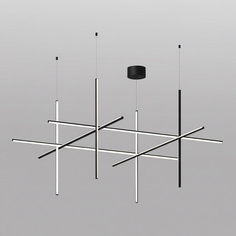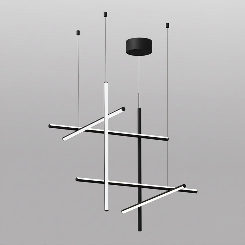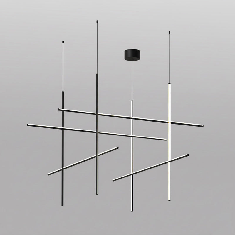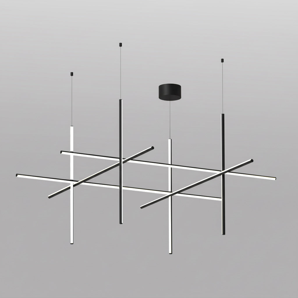 The Coordinates Linear Chandelier system employs intersecting horizontal and vertical strips to create sophisticated geometric patterns. Crafted from premium extruded aluminum, each component delivers refined aesthetics with functional brilliance. The integrated LEDs emit light omnidirectionally with exacting precision, producing an expansive, evenly distributed glow that transforms any space into a gallery of illuminated geometry.