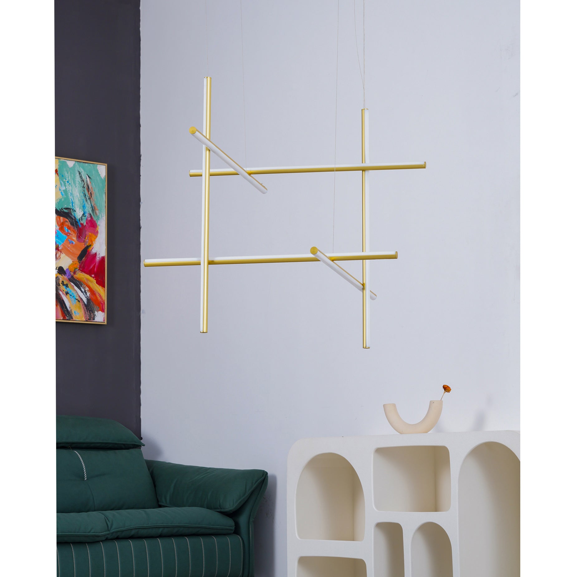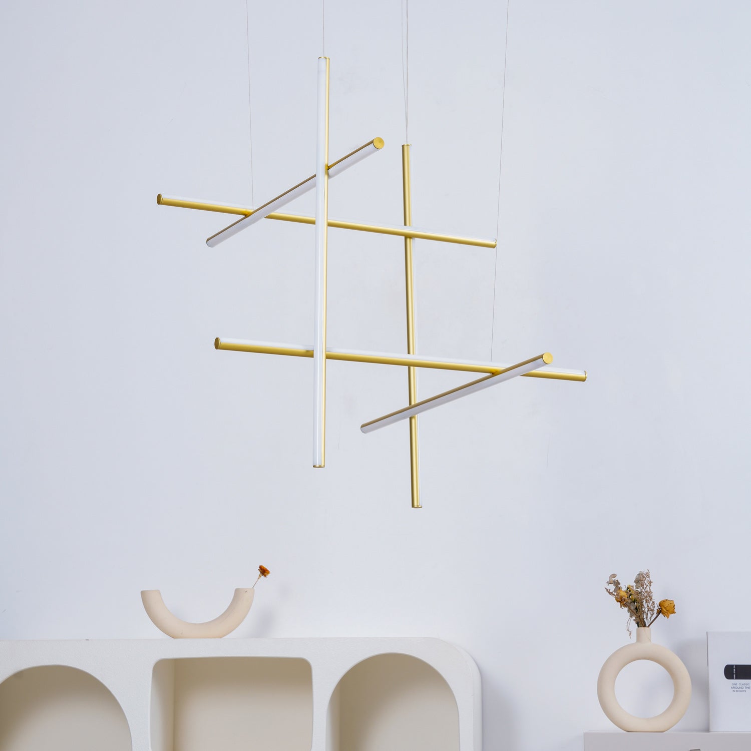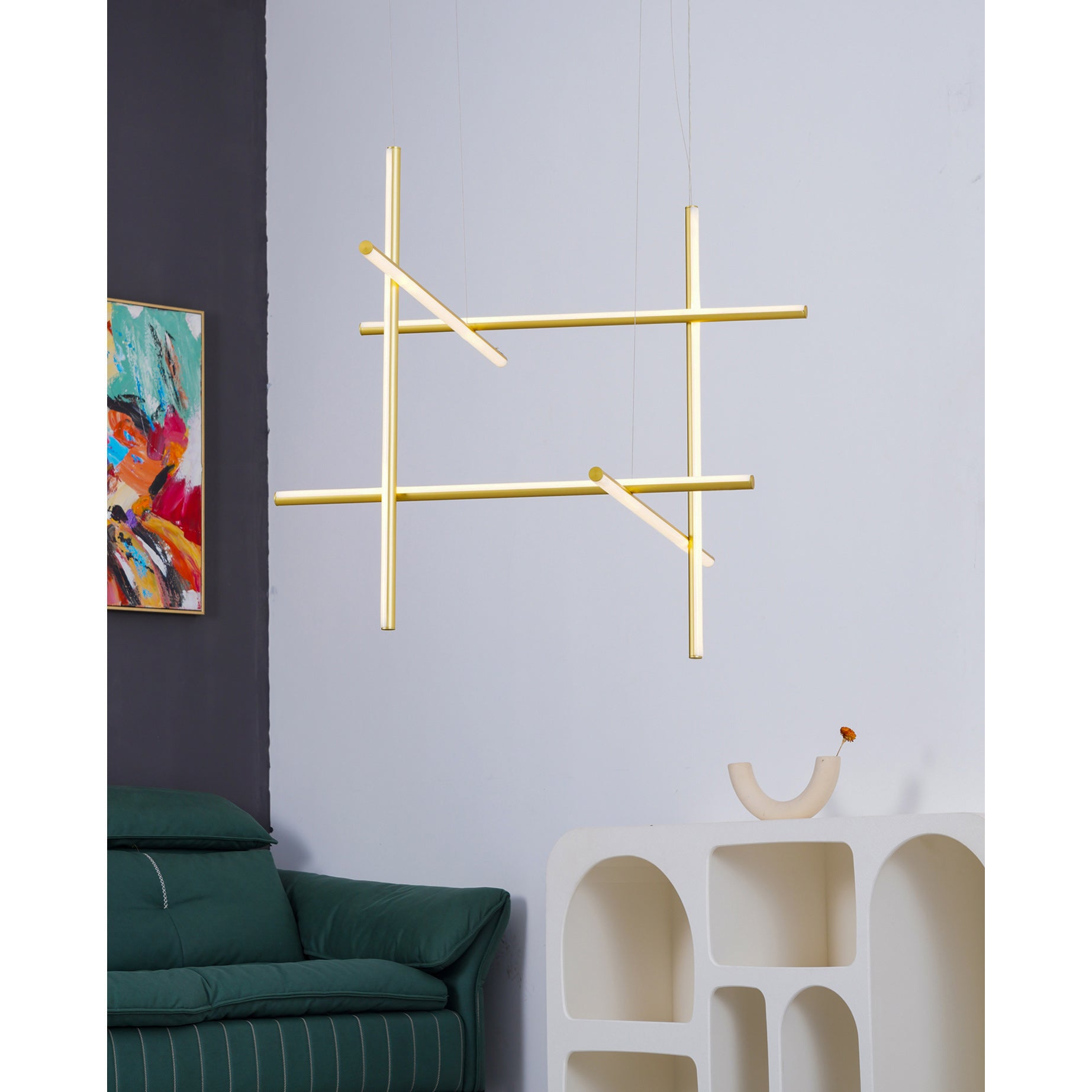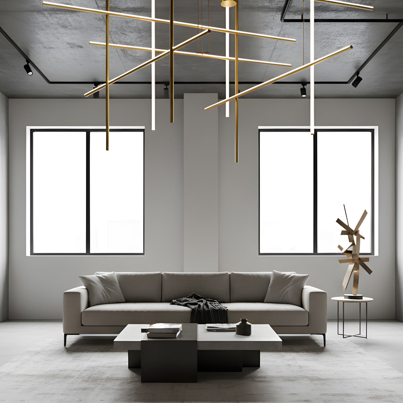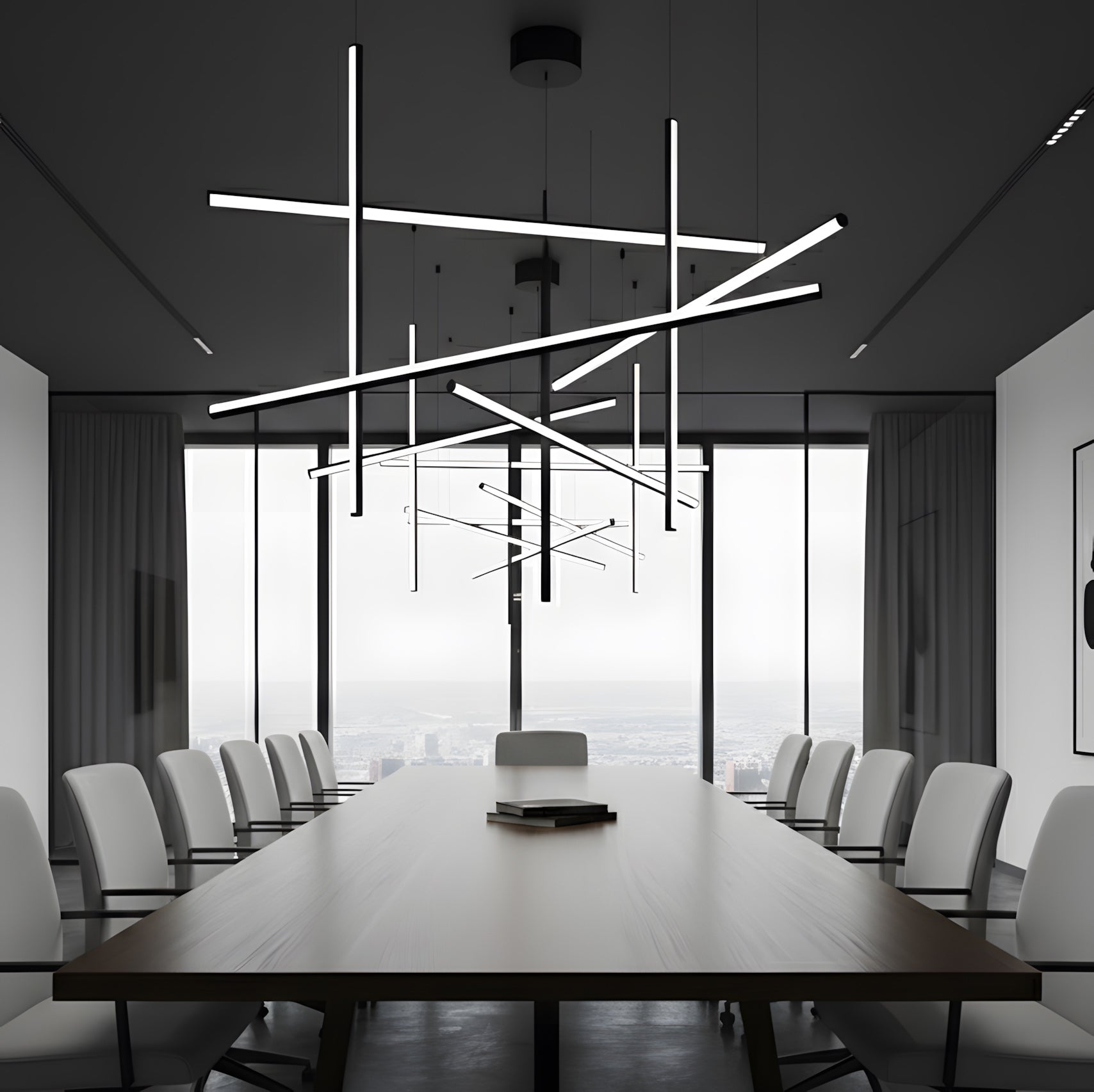 The Coordinates Linear Chandelier system employs intersecting horizontal and vertical strips to create sophisticated geometric patterns. Crafted from premium extruded aluminum, each component delivers refined aesthetics with functional brilliance. The integrated LEDs emit light omnidirectionally with exacting precision, producing an expansive, evenly distributed glow that transforms any space into a gallery of illuminated geometry.