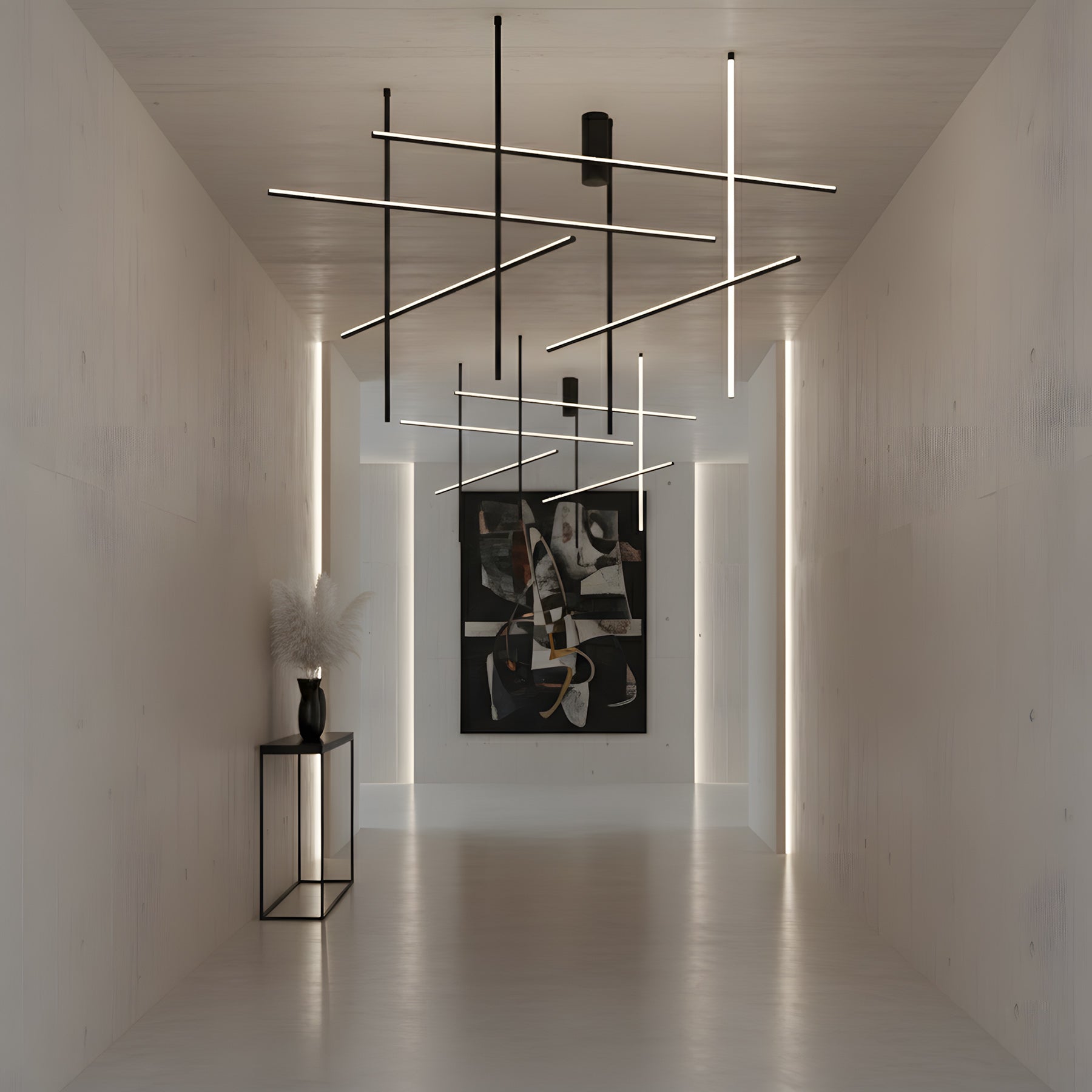 The Coordinates Linear Ceiling Light harnesses intersecting planes of aluminum to establish striking architectural compositions overhead. The system's modular geometry adapts to diverse spatial configurations while maintaining visual coherence, making it an essential choice for environments demanding both technical performance and refined design sophistication.