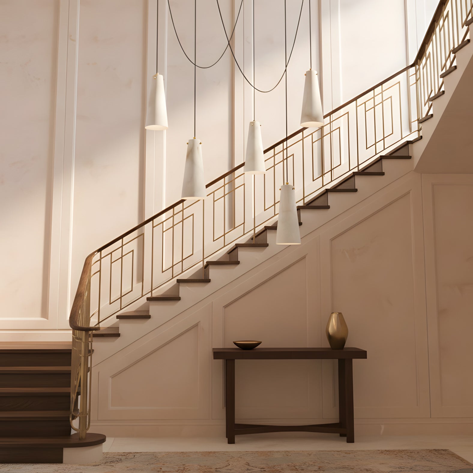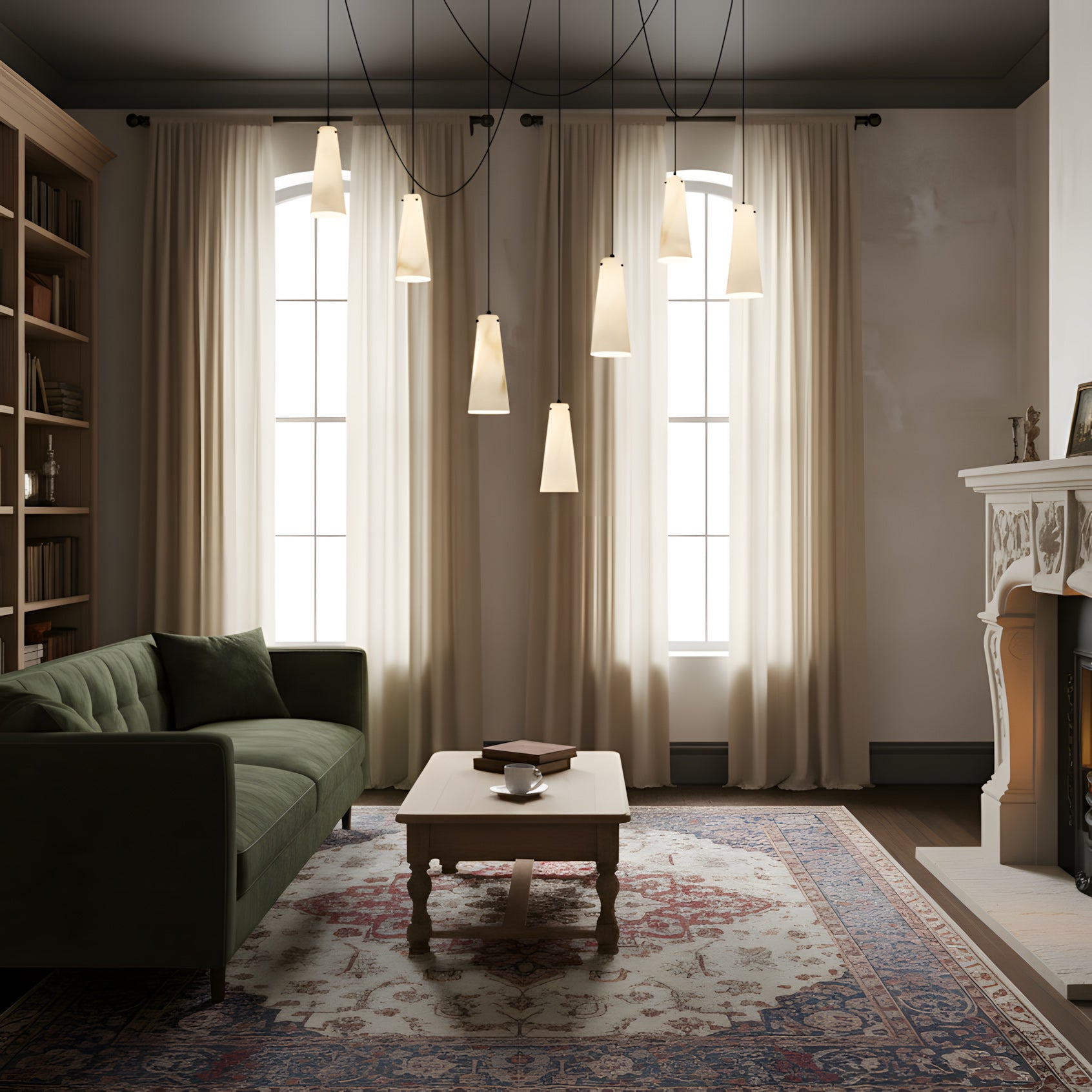 The Licau Alabaster Chandelier represents a sophisticated lighting solution for discerning interiors. Hand-finished alabaster shades diffuse light with a distinctive warmth, creating an inviting atmosphere throughout your home. Customize your installation by selecting shade quantities and varying pendant lengths to achieve a cohesive yet dynamic lighting composition that complements your architectural vision.