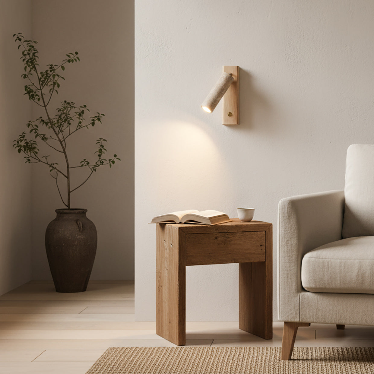 Expertly crafted with natural wood and travertine, the Ouglres Wall Lamp adds a touch of rustic charm to any space. Its rotatable design allows you to flexibly illuminate your space, while the durable materials ensure long-lasting use. Illuminate your home with style and functionality.