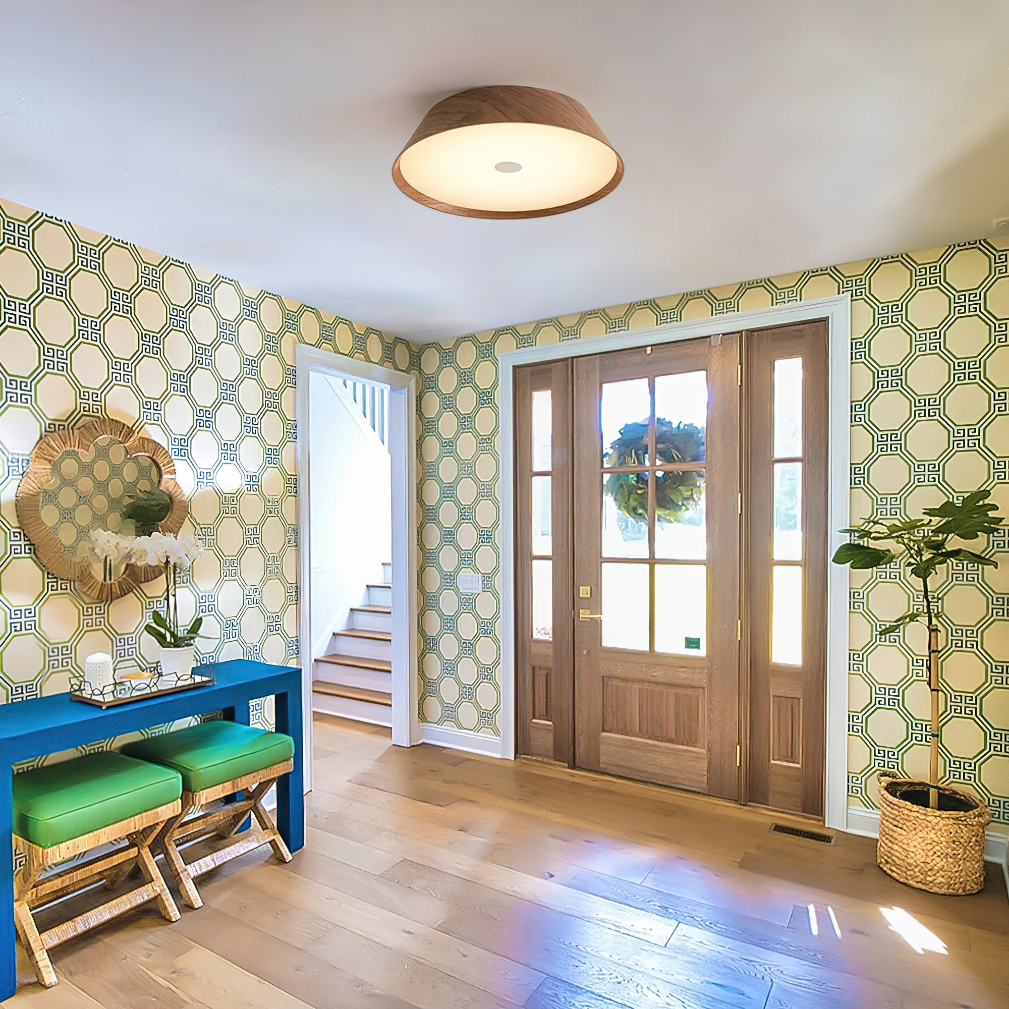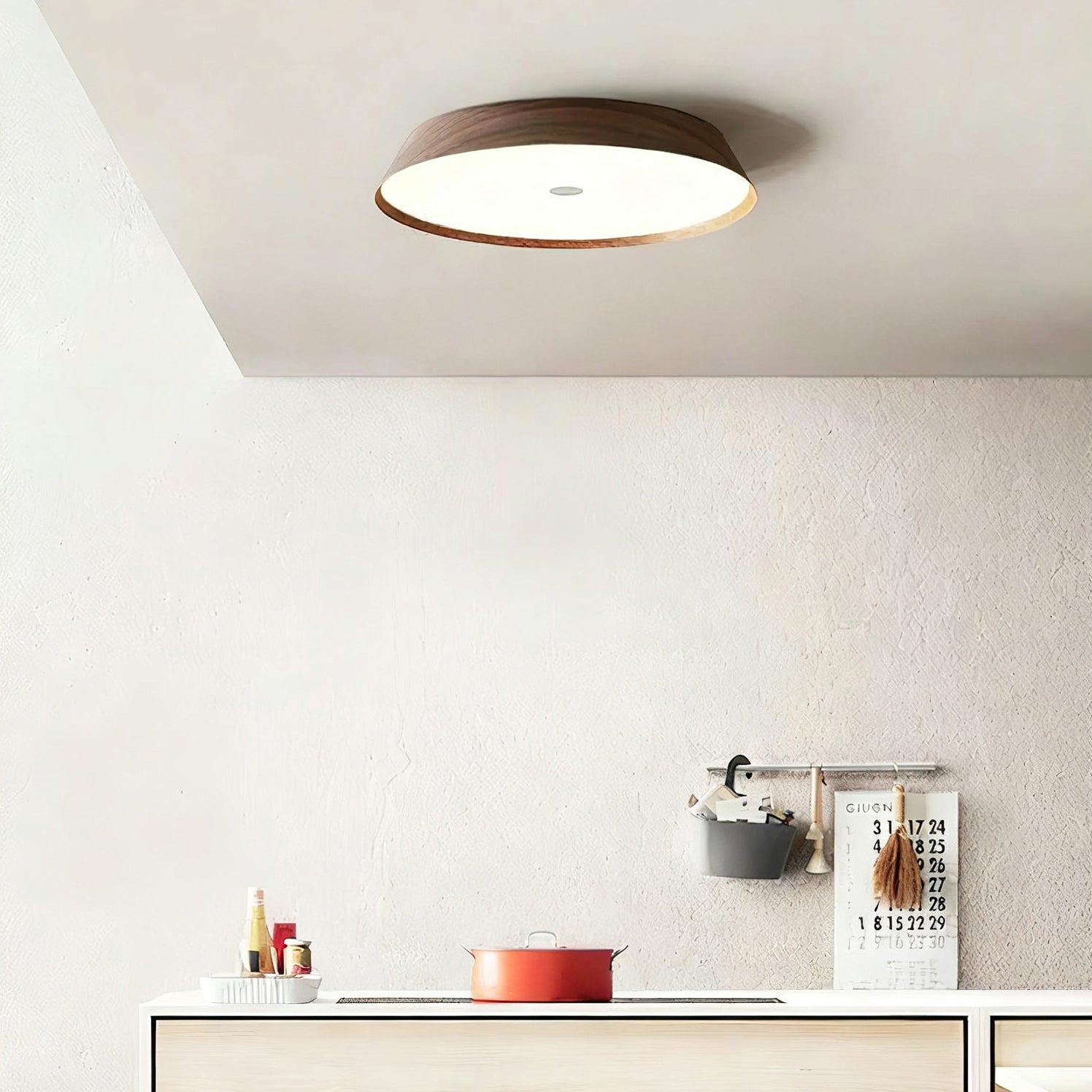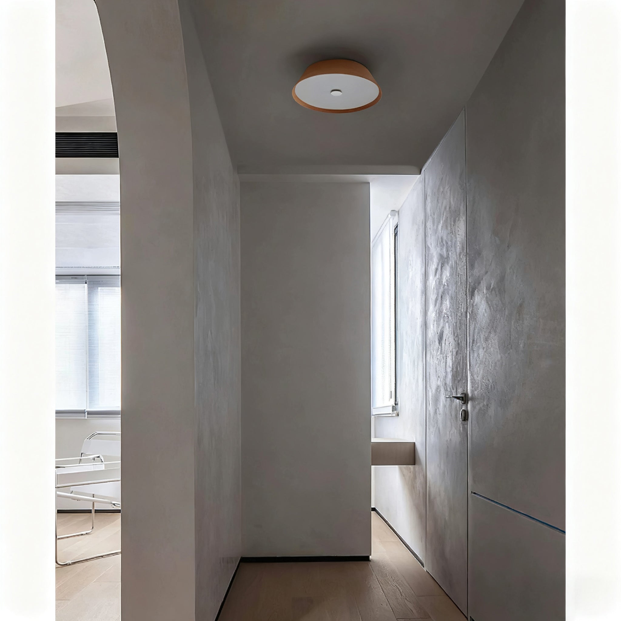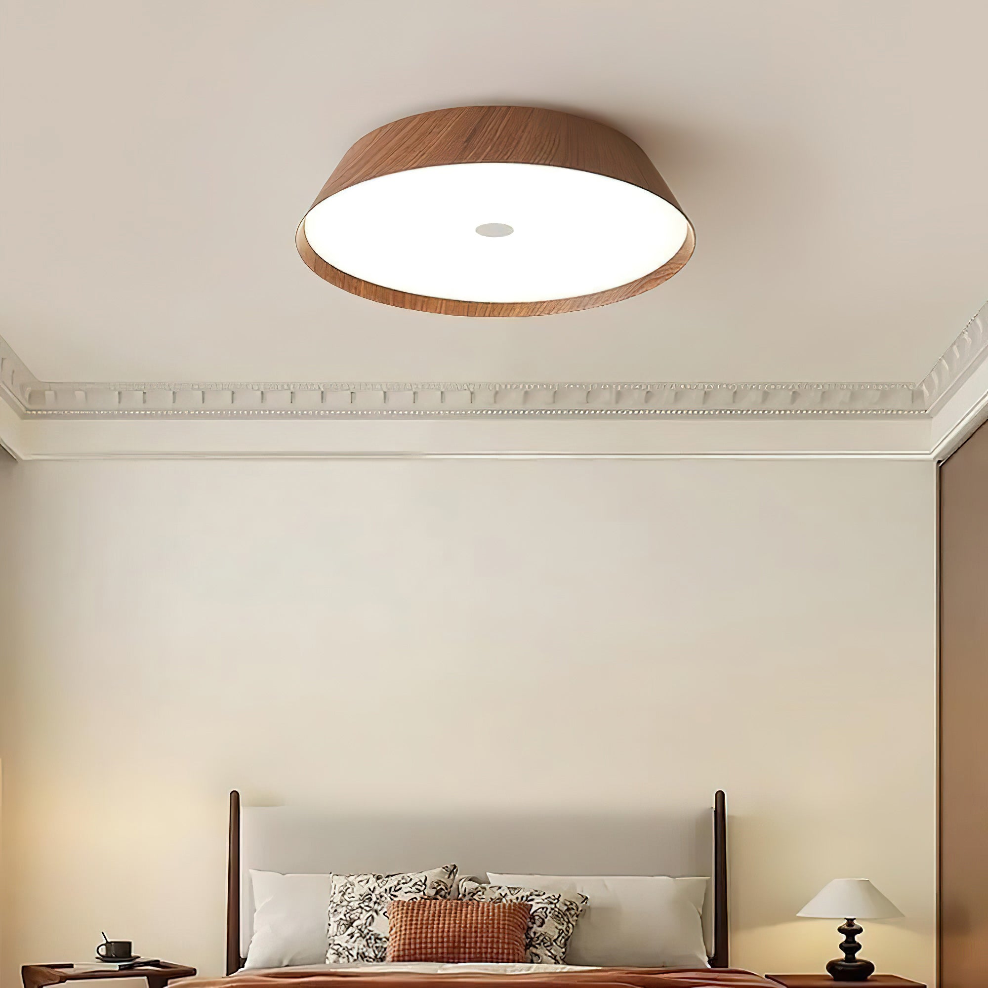 This Rogu Wooden Ceiling Lamp designed with the concept of "rustic yet timeless" in mind, is made from solid wood showcasing its natural grain. Each unique grain reflects nature’s artistry, transforming the lamp into more than just a lighting fixture. Its smooth, rounded form integrates seamlessly into various ceiling environments, be it living rooms, dining areas, or foyers-offering subtle yet dependable illumination.