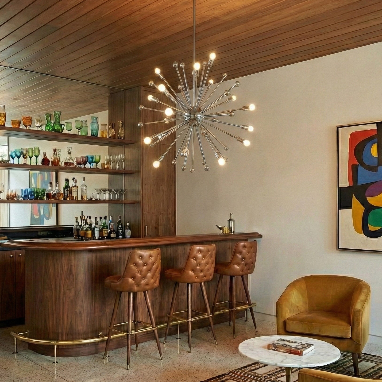• A true icon of atomic-age style, captures the bold spirit of mid-century design with a futuristic twist.