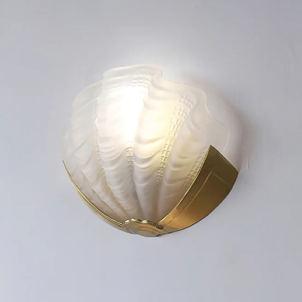 Enhance your interior with the timeless elegance of the Seashell Glass Wall Sconce, an ideal addition for hallways, bedrooms, or adjacent to mirrors. Its textured glass shell gently disperses light, producing a cozy and welcoming atmosphere. Designed to complement both traditional and contemporary settings, this fixture seamlessly elevates your home décor with sophistication.