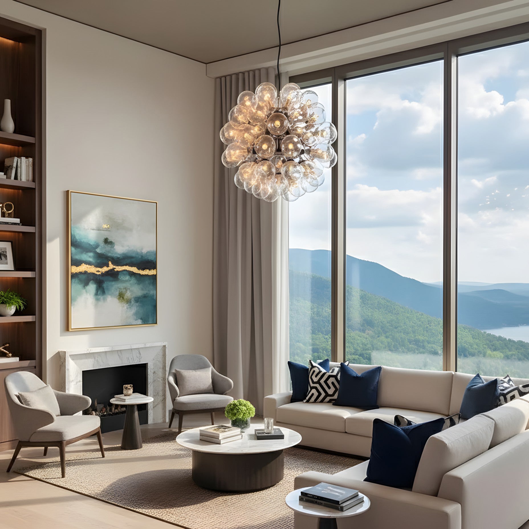 Transform your interior with the Taraxacum Glass Chandelier, a sophisticated lighting fixture that combines contemporary design with timeless appeal. The glass construction ensures refined light diffusion while maintaining the clean lines characteristic of modern aesthetics, establishing an atmosphere of understated luxury throughout your environment.
