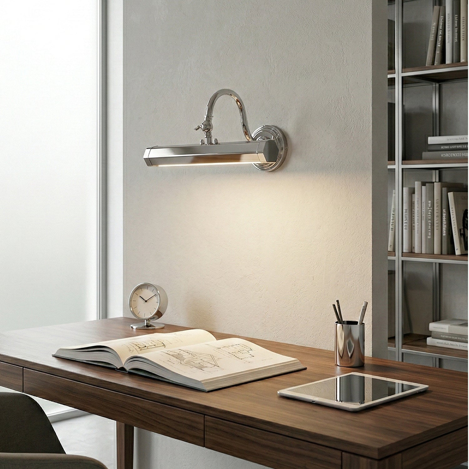 Bring the sophisticated atmosphere of a private gallery into your home with this Halcyon Wall Light. It features a graceful swan-neck arm with a precision adjustable knuckle. This allows you to direct the wash of light exactly where needed, reducing glare and perfectly highlighting the brushstrokes of a painting or the details of a wall display.