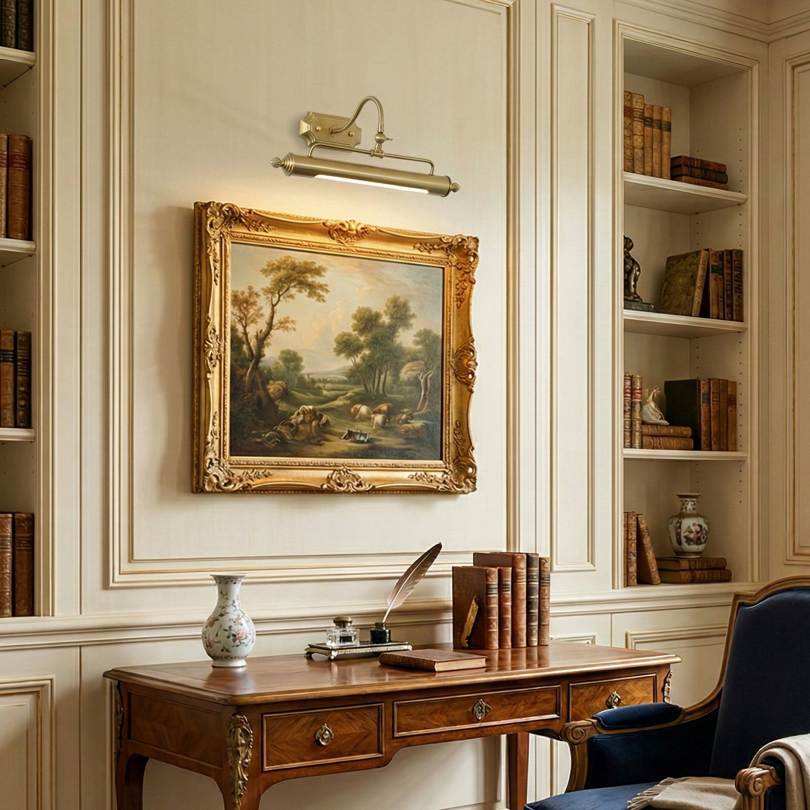 Illuminate your most cherished artwork, photographs, or mirrors with this distinguished classic Vellichor Wall Light. The elegantly curved swan-neck arm includes a precision adjustable knuckle joint, allowing you to tilt the shade and direct the light angle perfectly. Whether mounted in a private home library or a formal living room, this lamp provides the focused, sophisticated illumination required to enhance the colors and details of your wall displays.