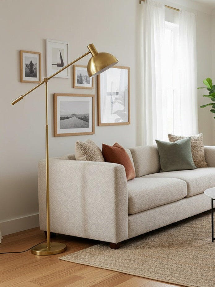 Our Devon Floor Lamp stands out from the crowd with its unique gold rocker arm design, ideal for modernizing any living room. With it Metal construction, this sophisticated lamp provides timeless appeal and reliable illumination.