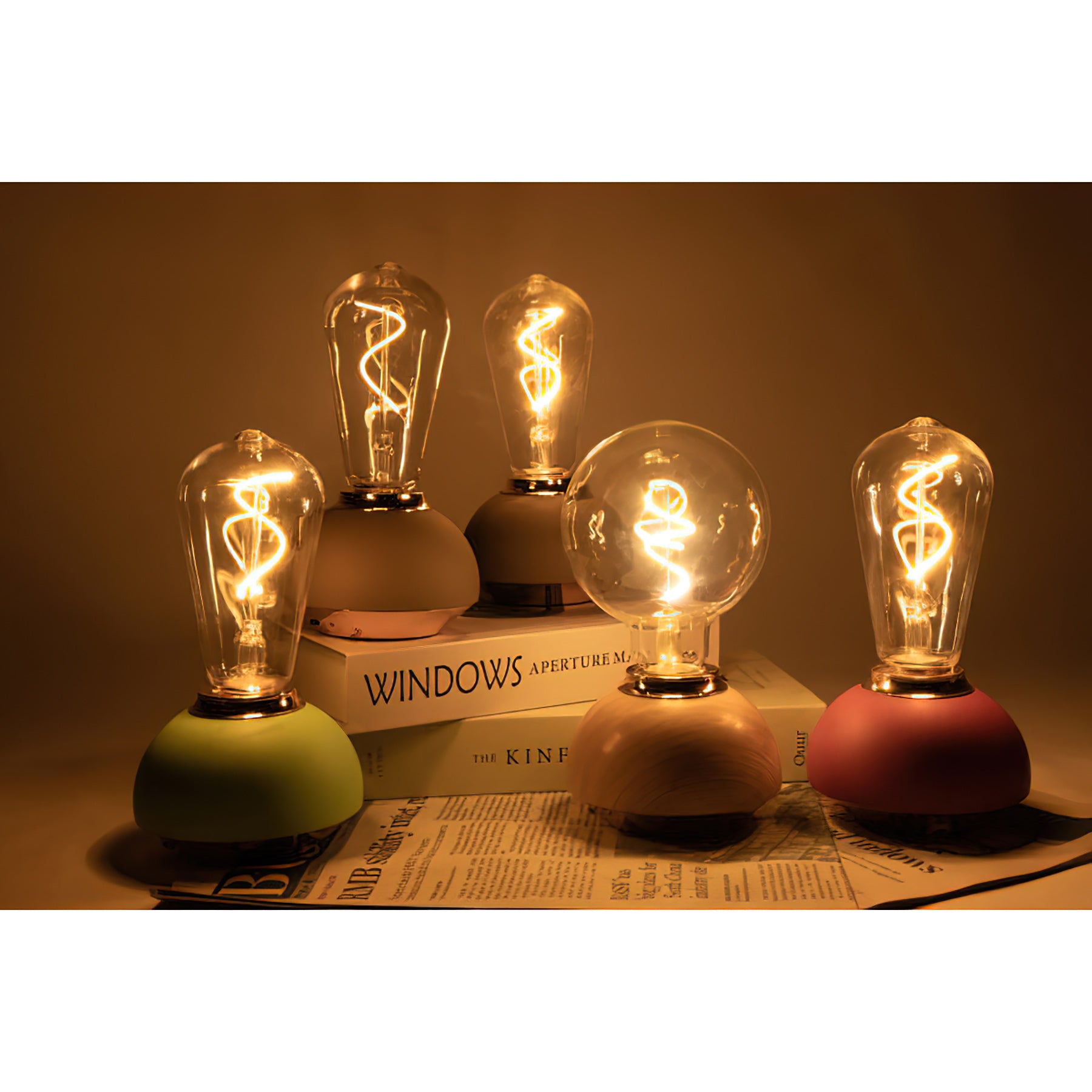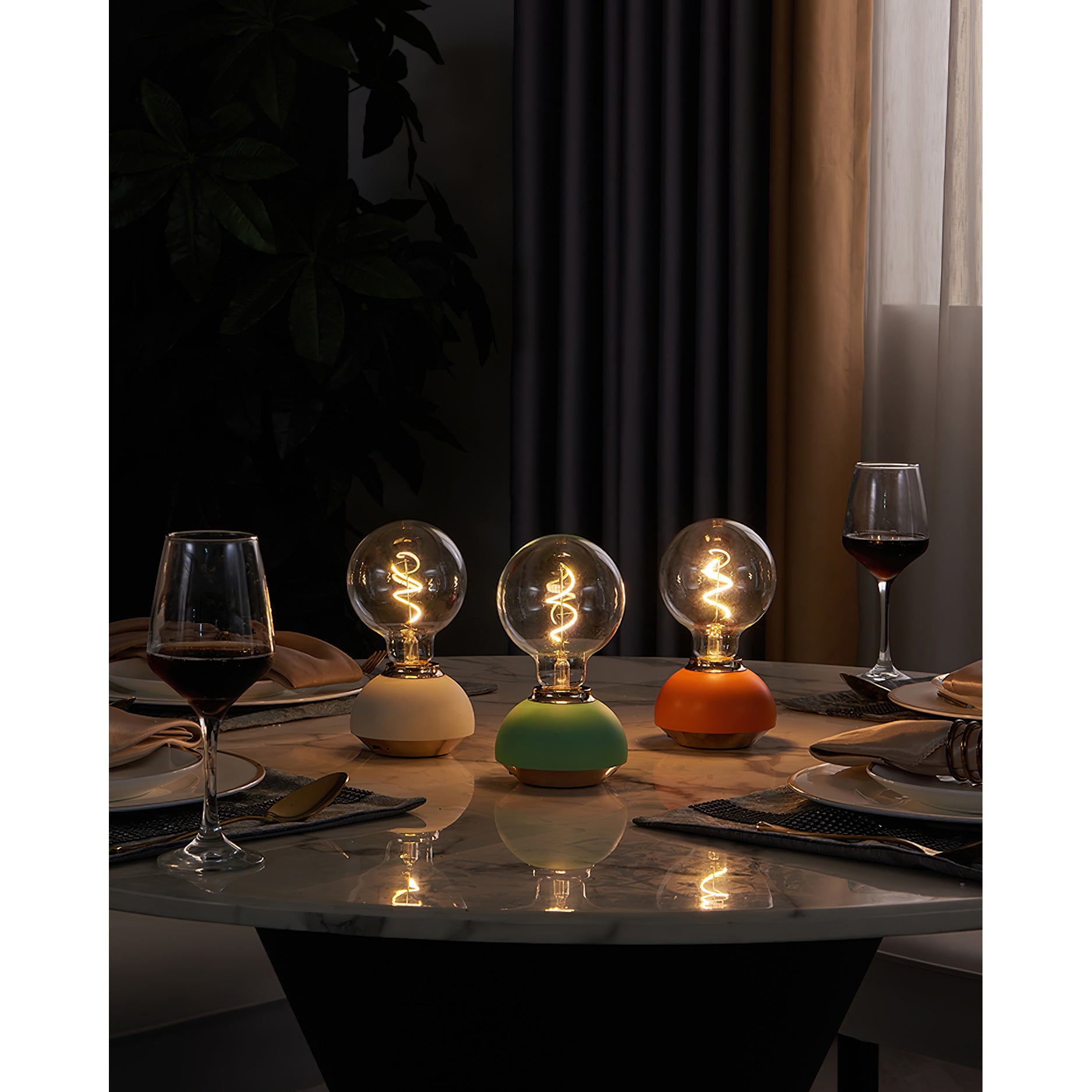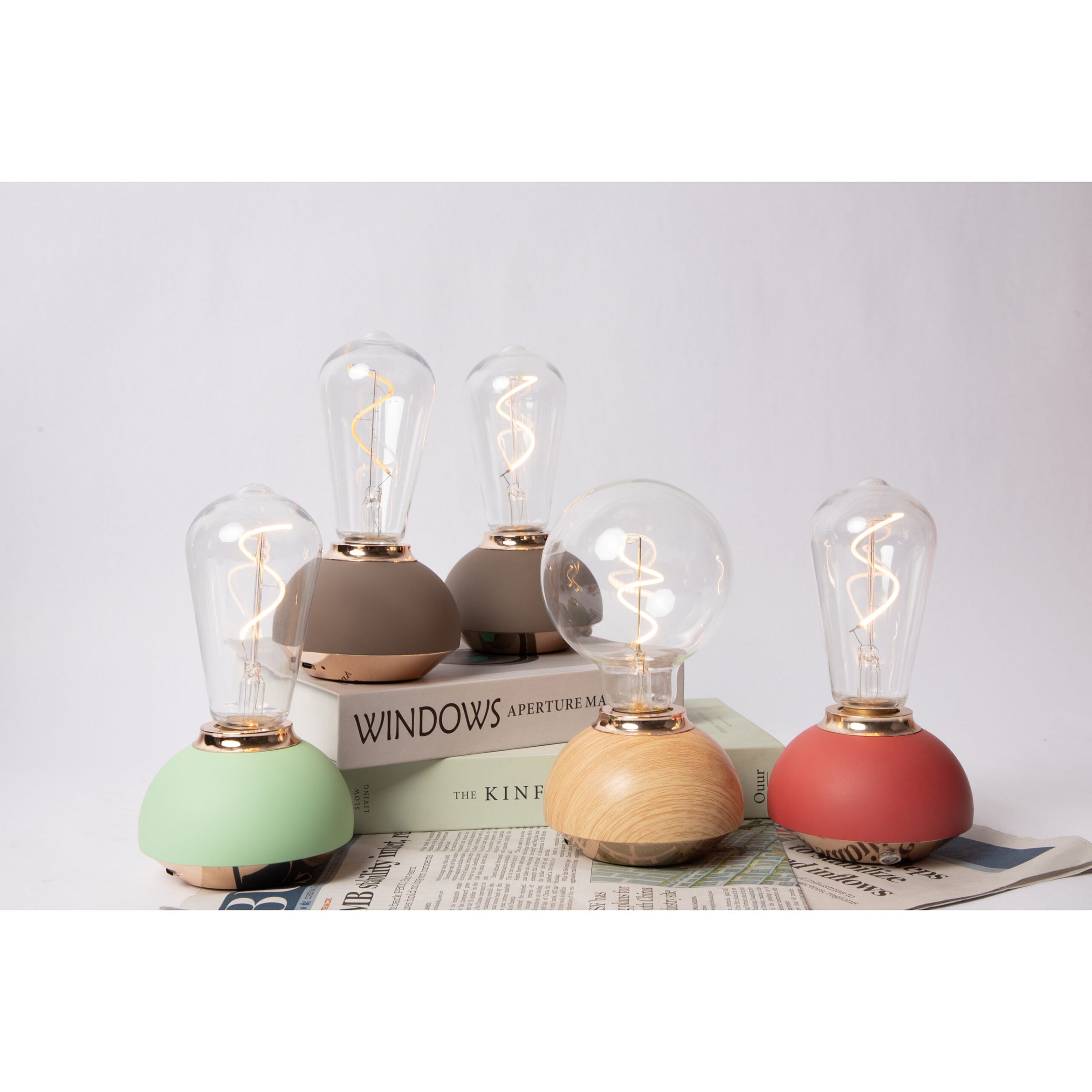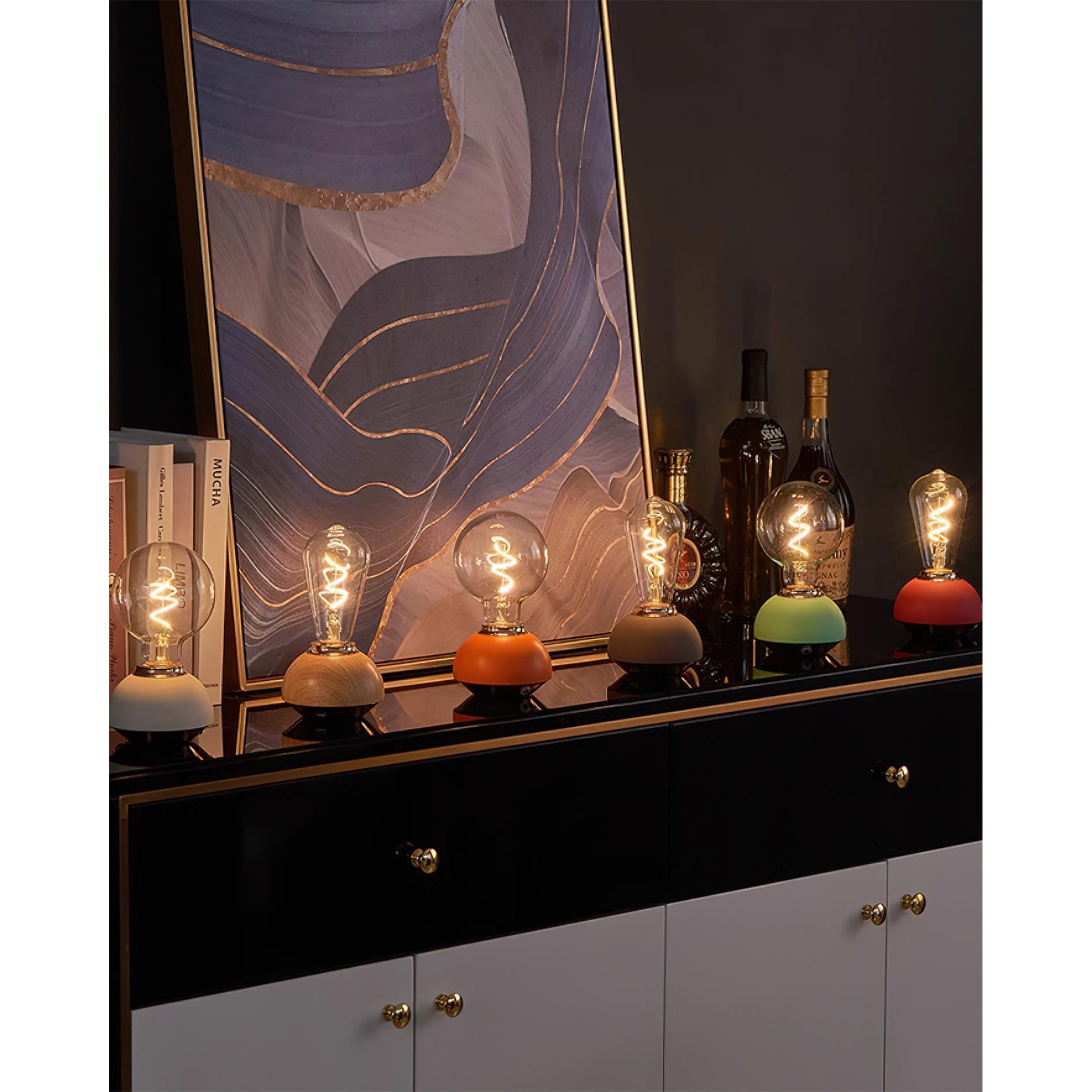 These delightful Hato Table Light combine practicality with vibrant color, making them the perfect addition to any modern home. Each lamp features a unique, charming round base, a soft hue, and a clear bulb that emits a warm, inviting glow.