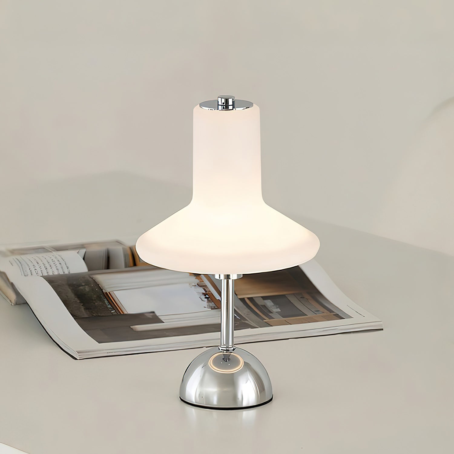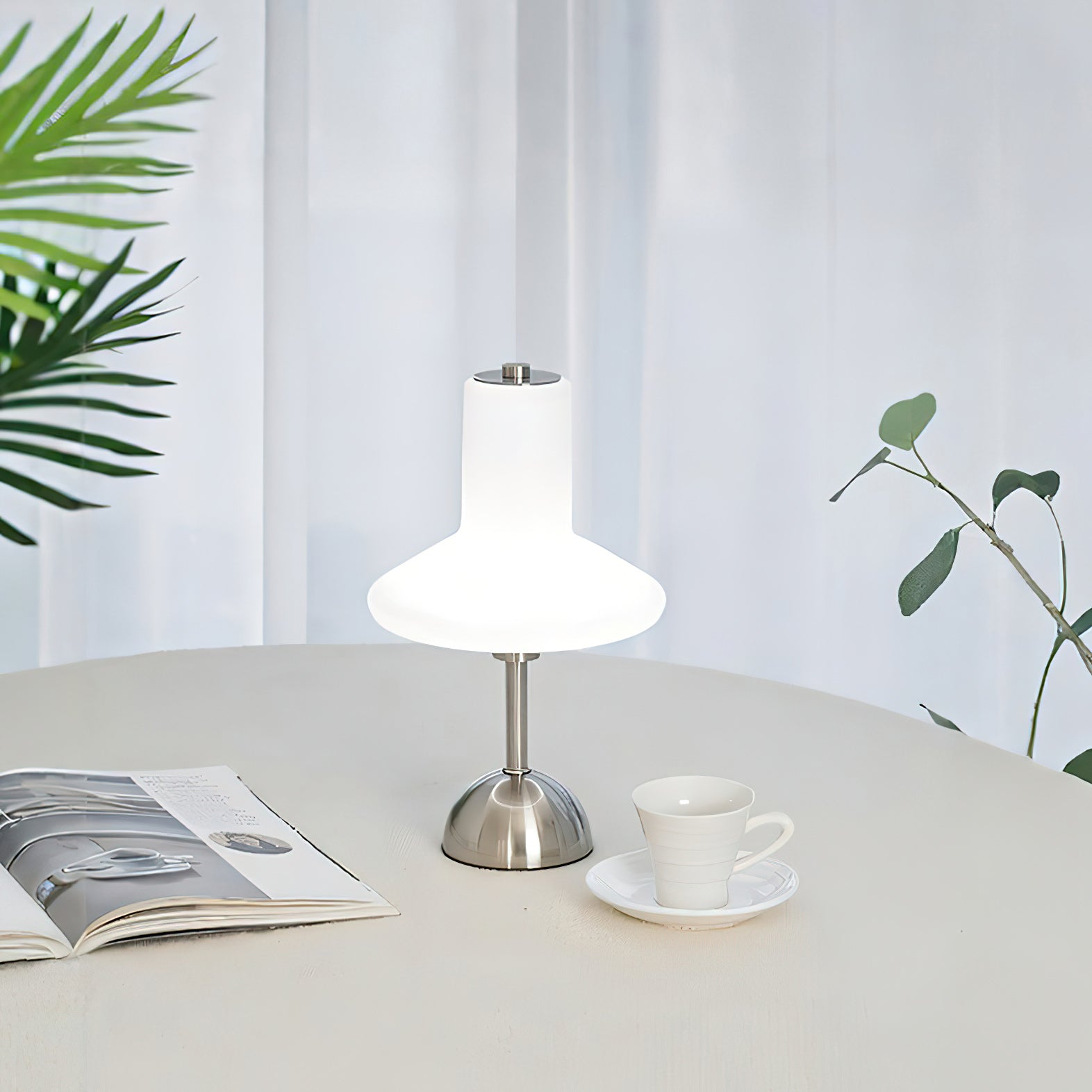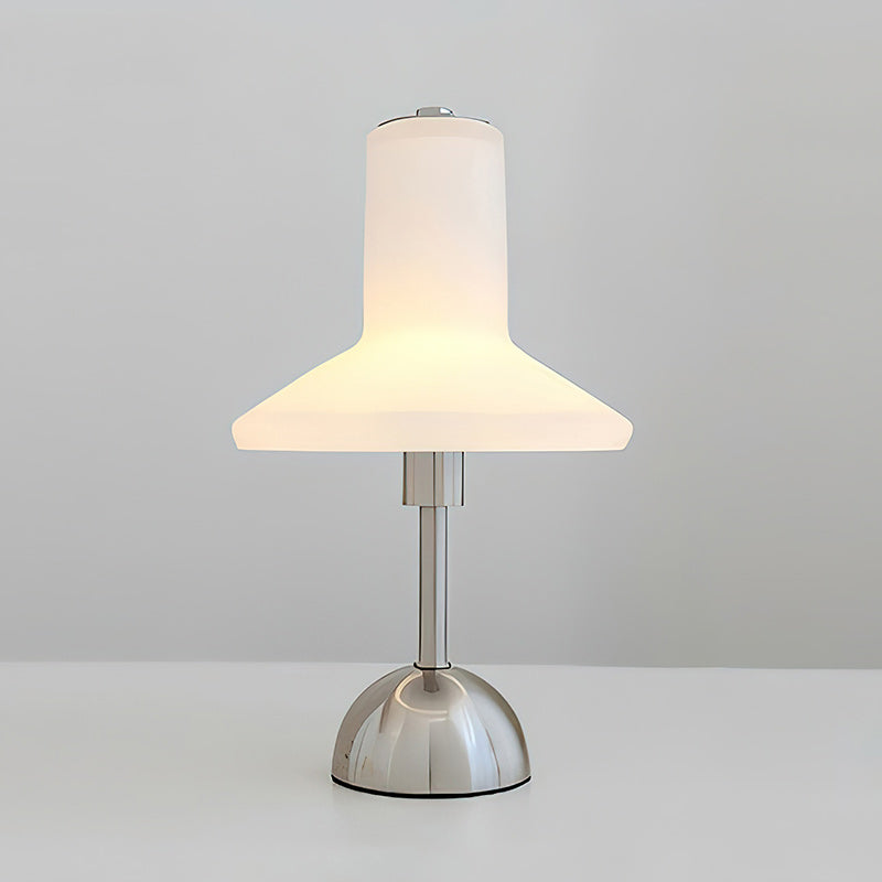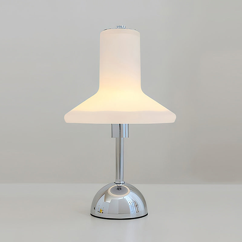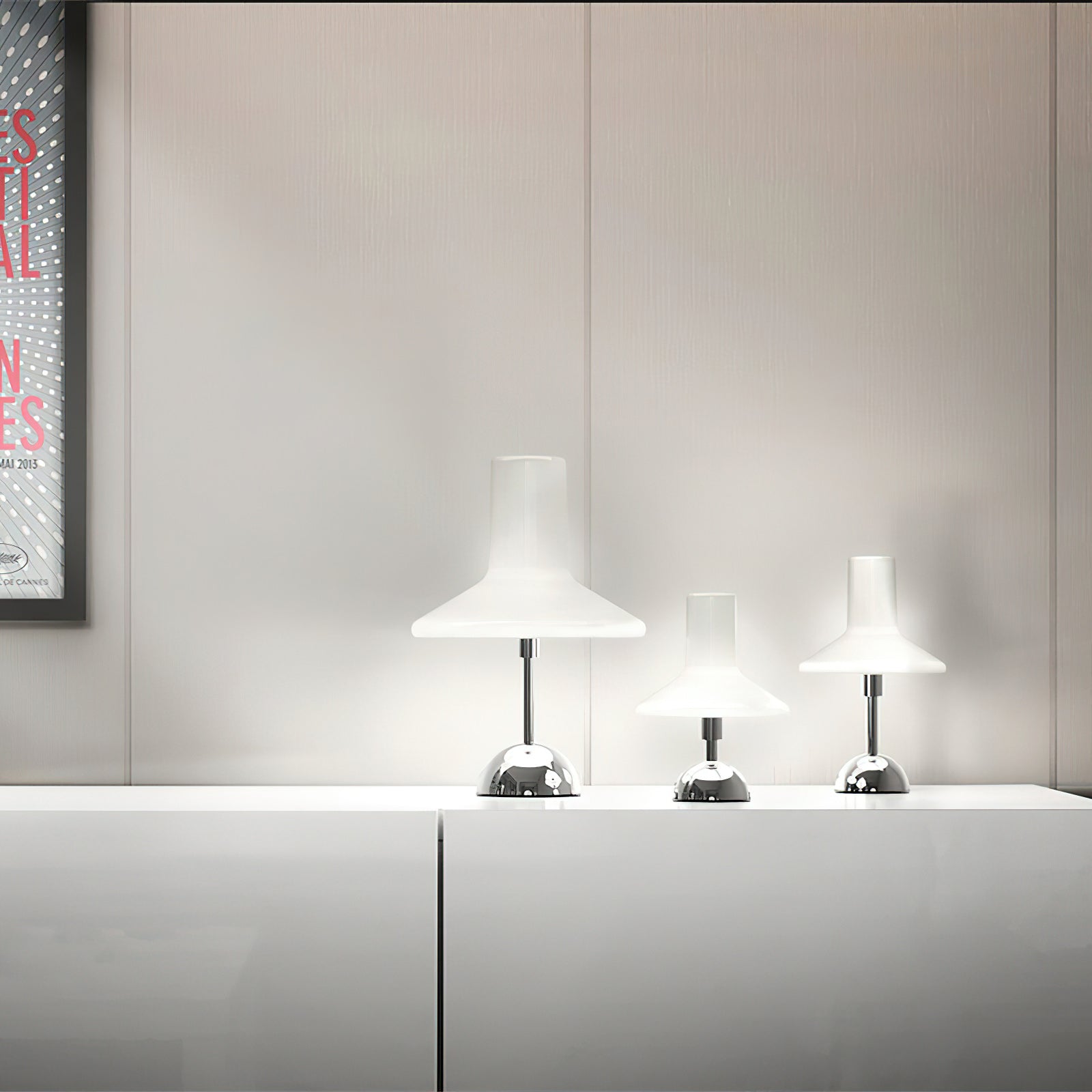 This striking Olly Table Lamp features a iron semi-spherical base and structure connected to a white glass shade with an interesting top hat shape. An idea as simple as it is pragmatic. Suitable to be placed in every place of the house: on shelves and bookcases, in bathrooms, or on the most usual bedside table.